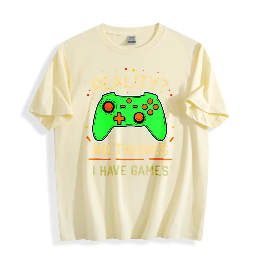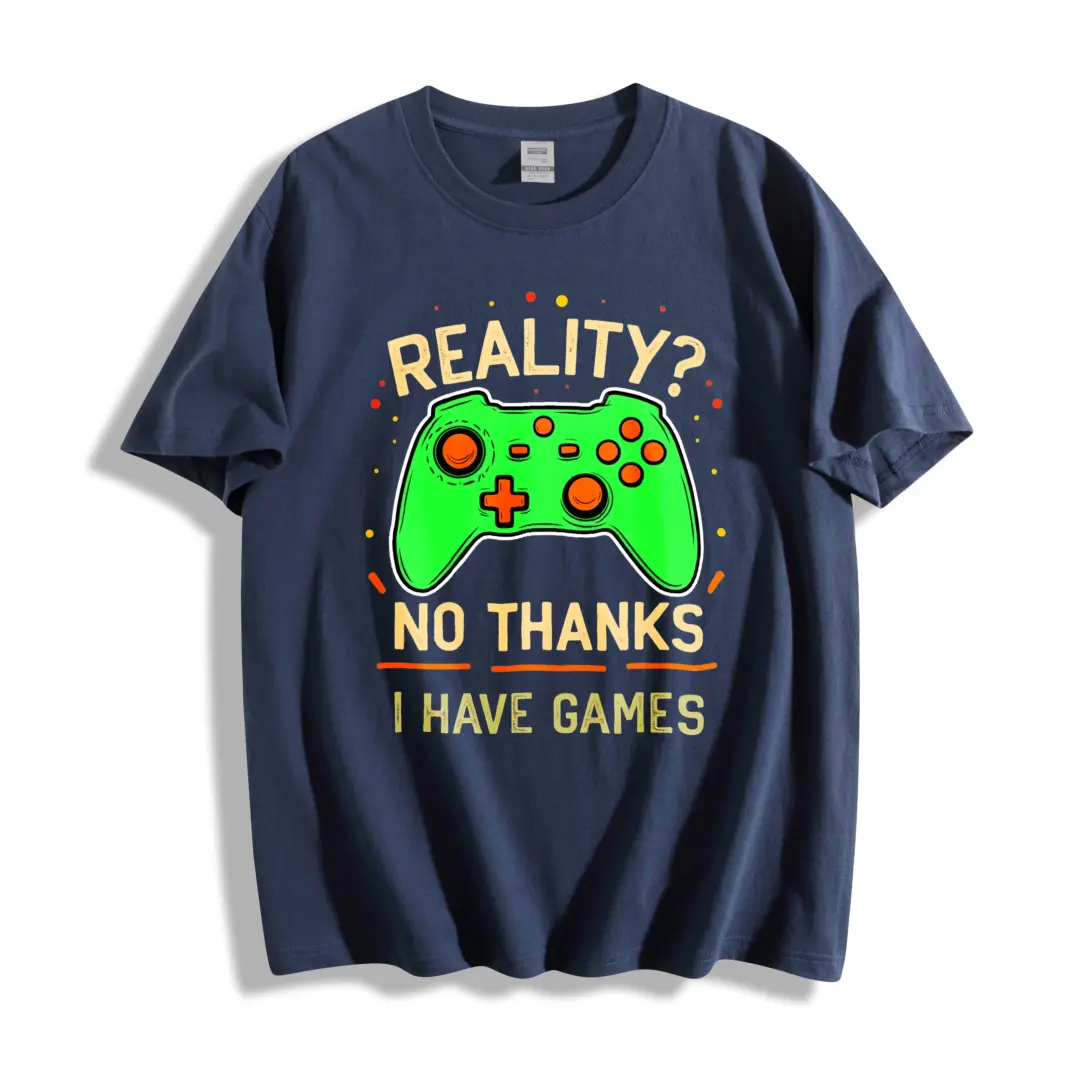 Casual Style Unisex T-Shirt With Gaming Controller And Text Reality No Thanks I Have Games Design Perfect For Gamers And Tech Lovers Ideal For Everyday Wear In Spring Summer Great Gift For Friends Family Who Love Video Games