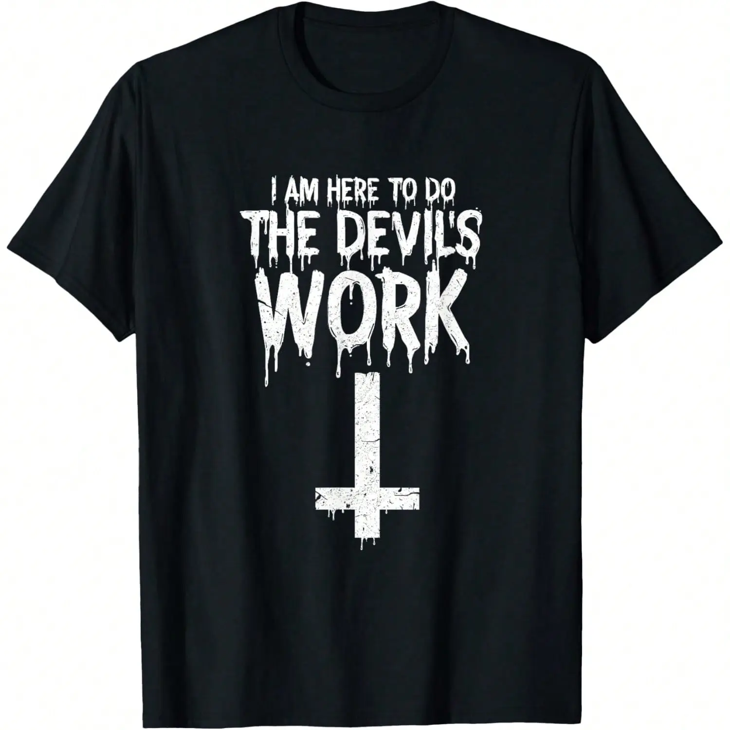 This unisex short sleeve tee showcases the humorous slogan "I Am Here To Do The Devil's Work." Ideal for those who appreciate edgy dark humor and quirky satirical style. The classic crew neck and relaxed fit make it perfect for daily outings, parties, and casual events. It's a statement piece that sparks interesting conversations and reflects a fun, unconventional personality.