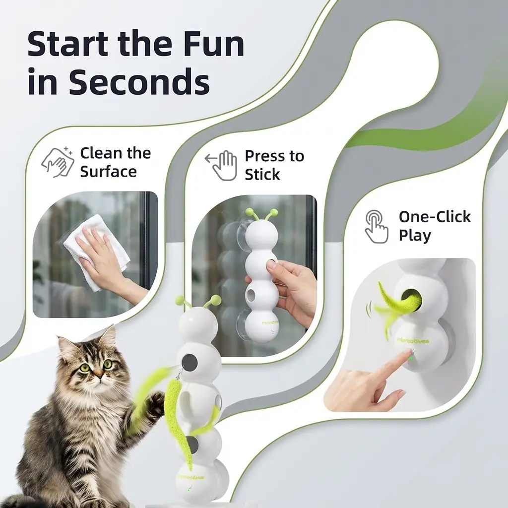 Cat Goes Crazy for This! Auto-Moving Feather Toy with Suction Cup. USB Rechargeable & Motion Sensor Activated!