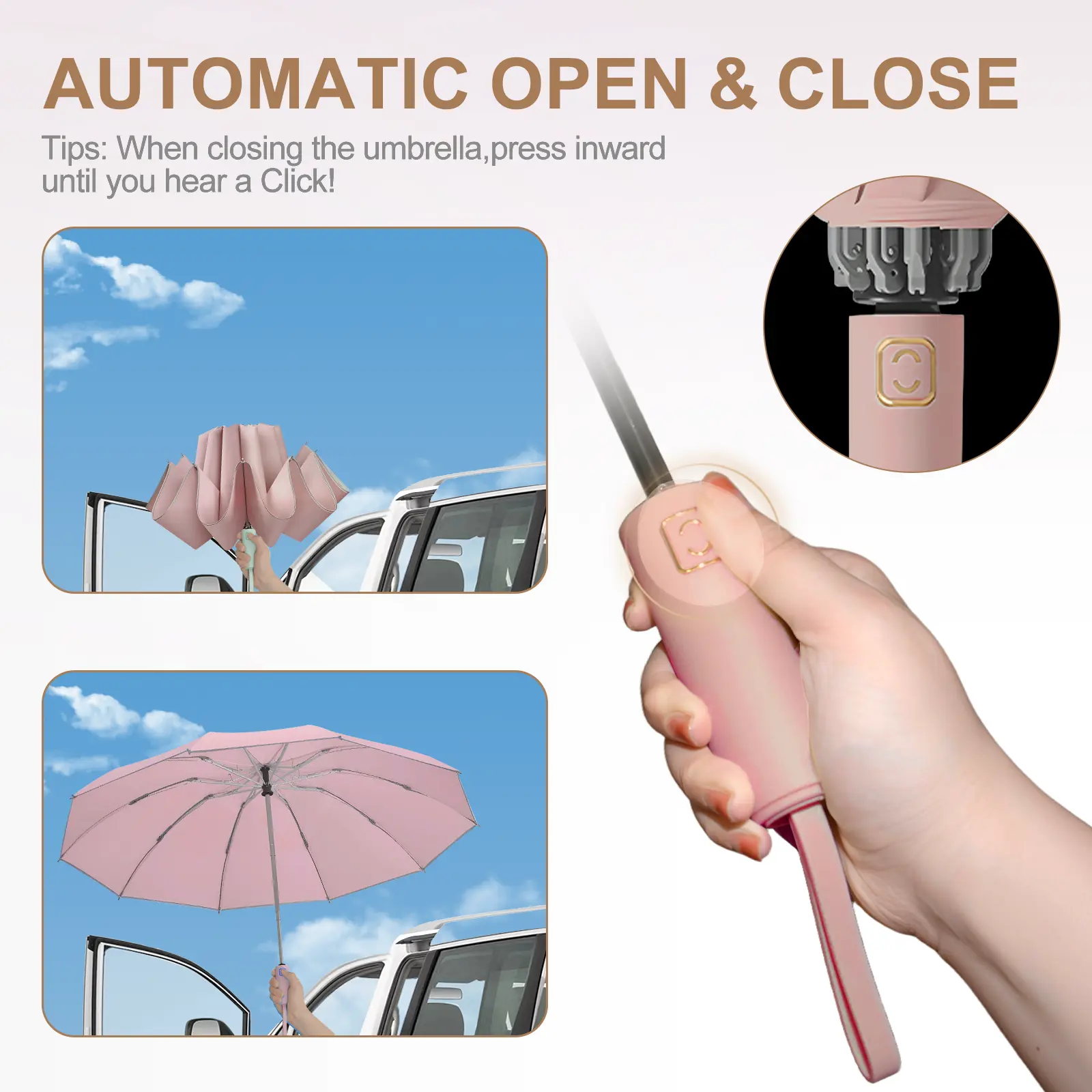 ·【Automatic Open & Close】Effortlessly open and close your umbrella with the auto open and close mechanism, perfect for quick use in unpredictable weather conditions.