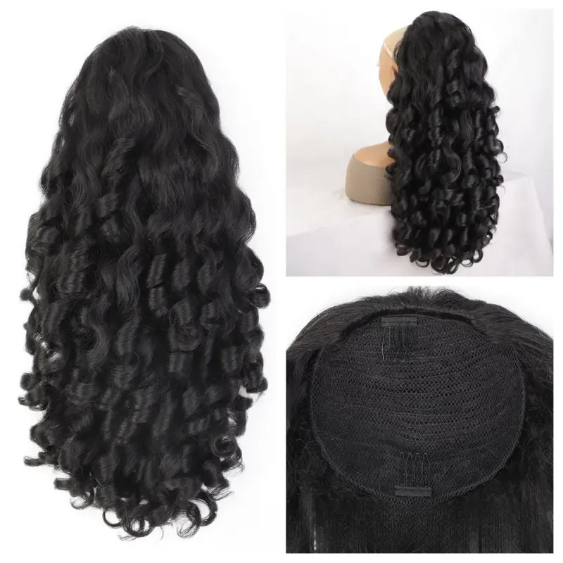 DB-Fluffy Short Curly Yaki Ponytail Drawstring Hairpiece Easy Wear Pony Tail Wig-DB