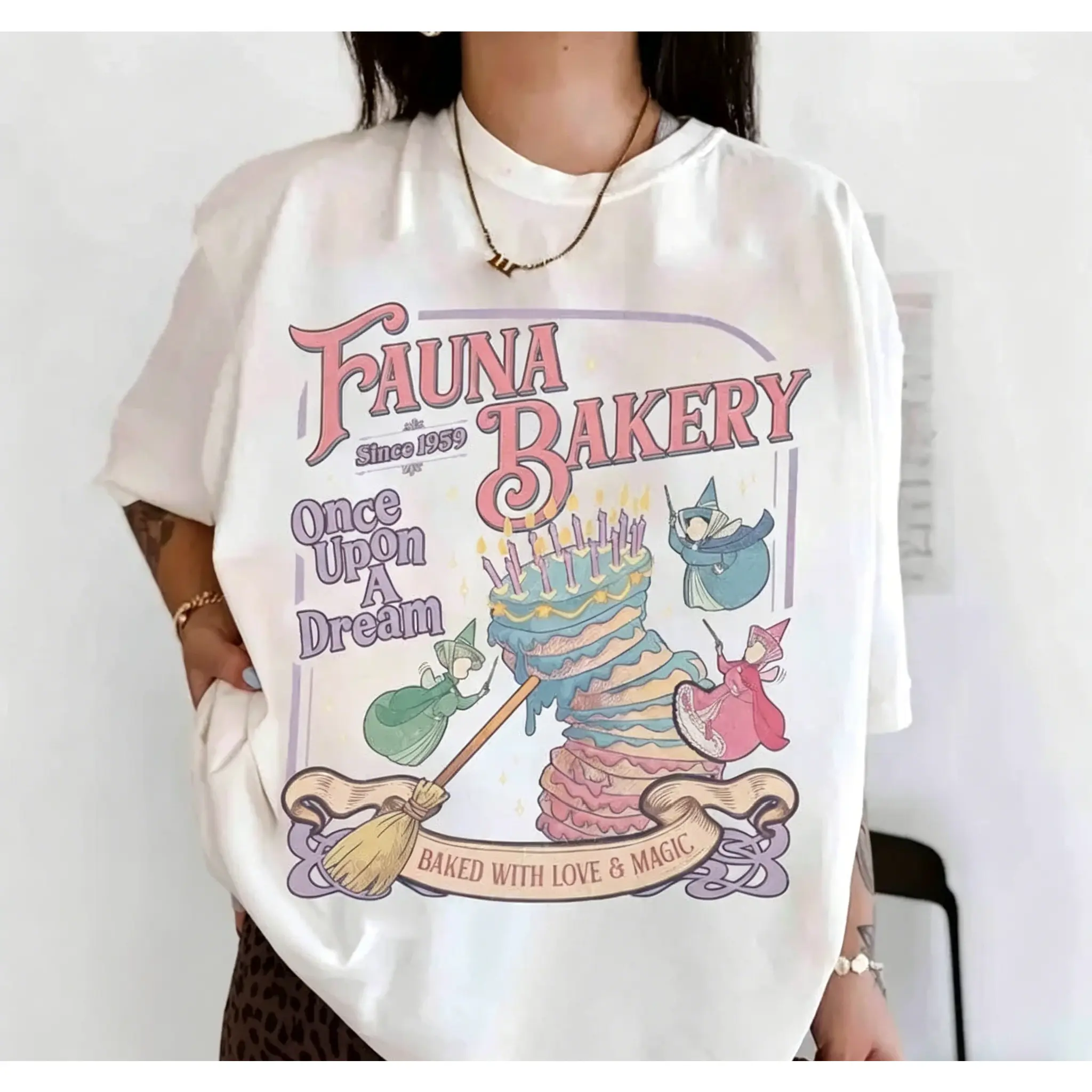 This unisex short sleeve tee features a whimsical Fairy Godmother Baking design with the sweet slogan "Baked With Love And Magic," capturing cozy cottagecore vibes and retro princess cake aesthetics. With a classic crew neck and a relaxed, comfortable fit, it is perfect for baking days, kitchen time, brunch dates, garden trips, family gatherings, casual outings, and everyday cozy wear. The dreamy, nostalgic graphic brings a magical and warm atmosphere, ideal for bakers, princess lovers, cottagecore fans, and anyone who enjoys sweet, gentle style. The high-quality print stays clear and vibrant through repeated wears and washes, resisting fading and peeling for long-lasting use. This charming and soft-style tee pairs easily with jeans, shorts, skirts, and casual bottoms to create a lovely, relaxed, and fairy-tale-inspired look that feels warm, creative, and full of gentle magic.