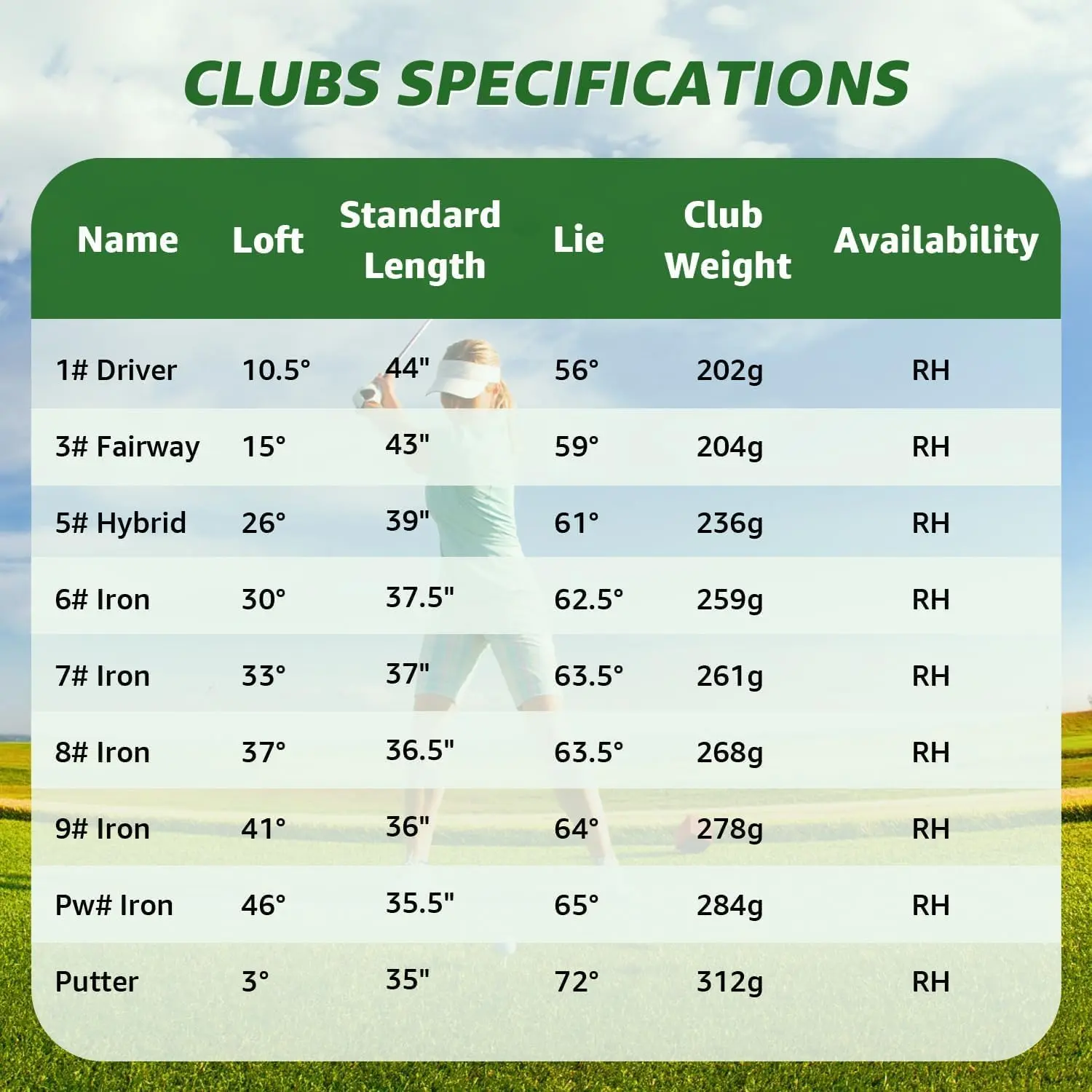 ·Convenient Hybrid & Irons: With low-profile design, the high elasticity hybrid can provide more speed to add distance. Besides, the irons with zinc alloy heads have deep grooves that increase friction for better control and spin. By the way, the hybrid is a great alternative for irons