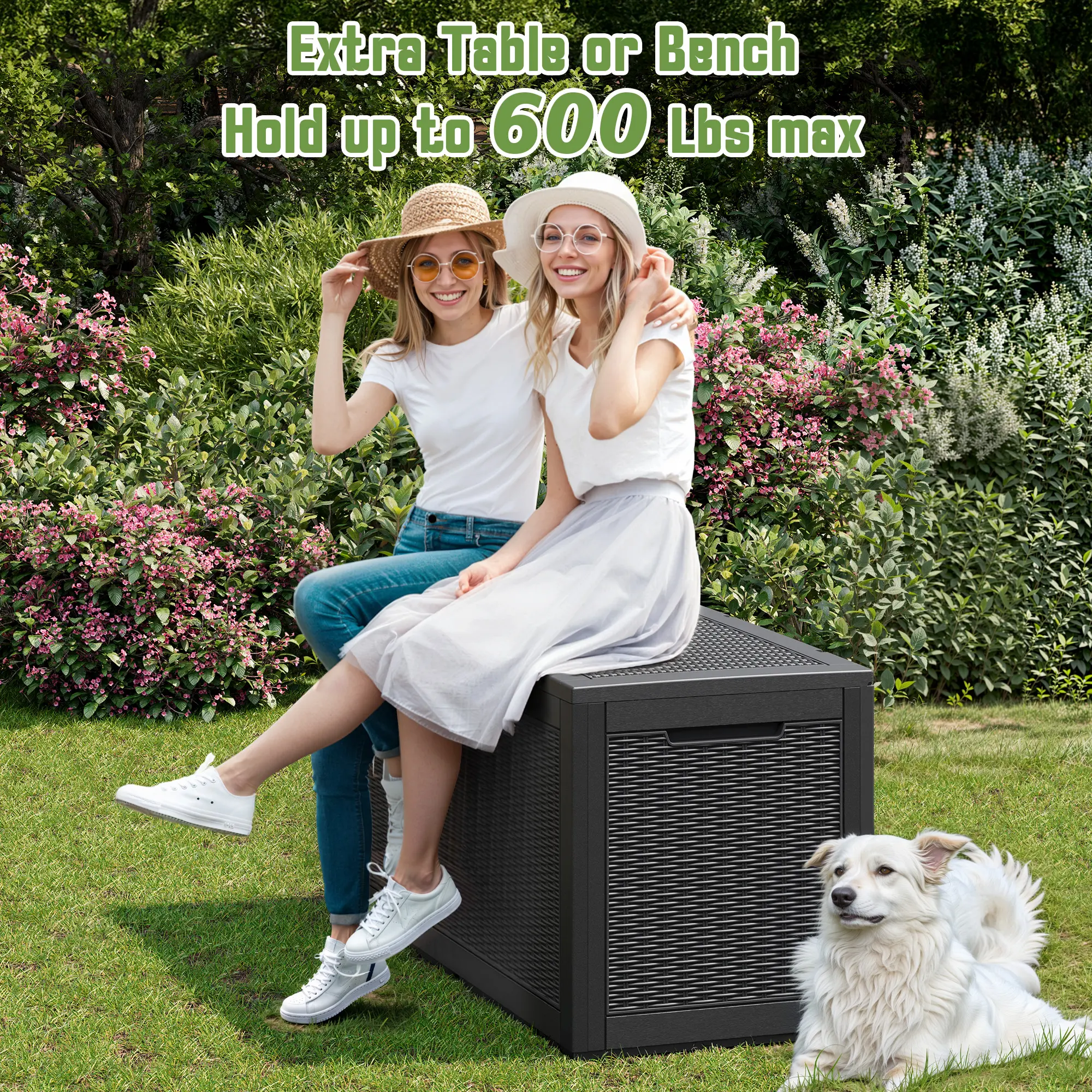 • Extra table or seat multifunctional deck box also serves as a comfortable single chair or table