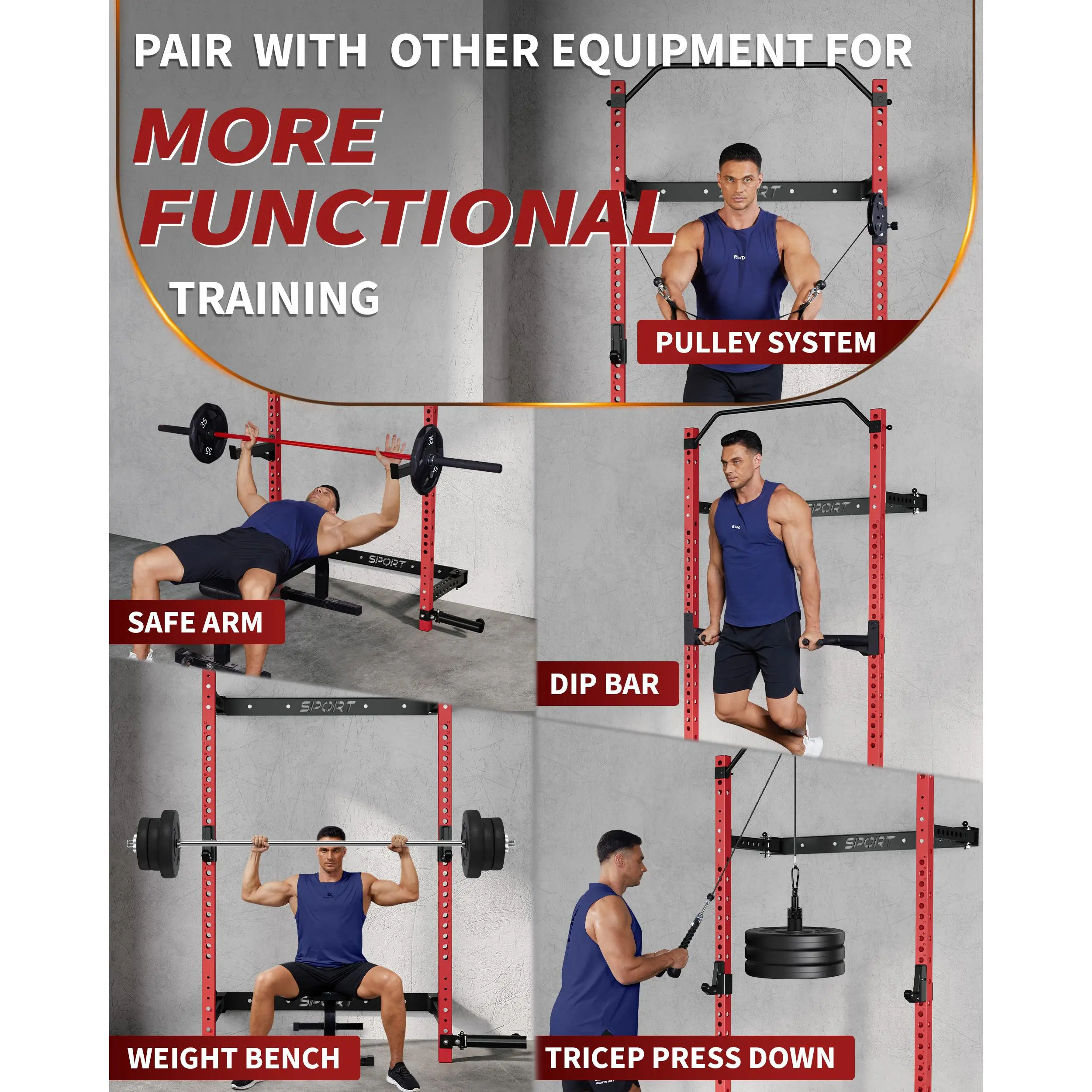 Whether you're into weightlifting, powerlifting, or functional fitness, this versatile squat rack adapts to your training needs. The practical open dimensions (53'' x 22.8'' x 86.2'') ensure ample workout space, while the compact folded size (53'' x 86.2'') makes storage effortless. Attachments and adjustment options expand your exercise variety, making this rack ideal for anyone looking to build strength and muscle at home without sacrificing valuable space.