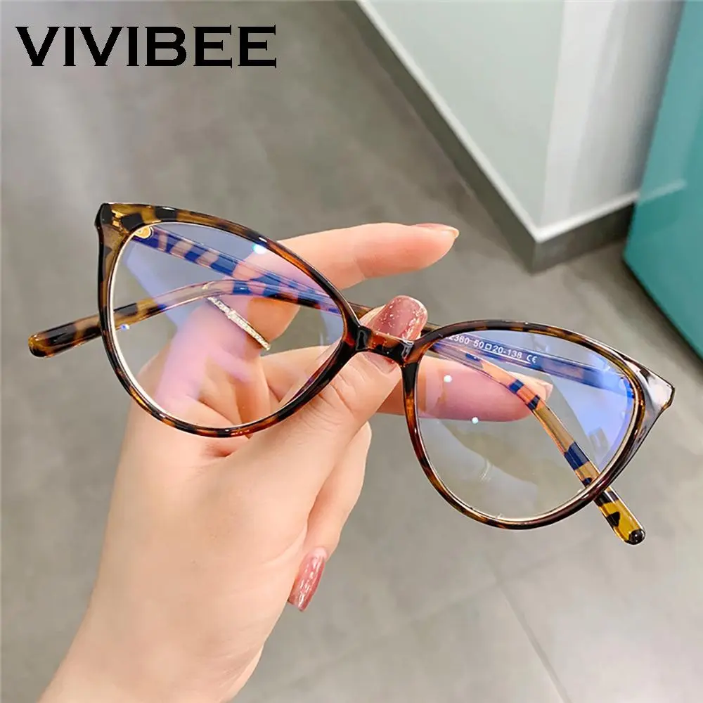VIVIBEE Women Cat Eye Blue Light Blocking Glasses Office Computer Glasses Frame Female Leopard Ladies 2026 Fashion Goggles