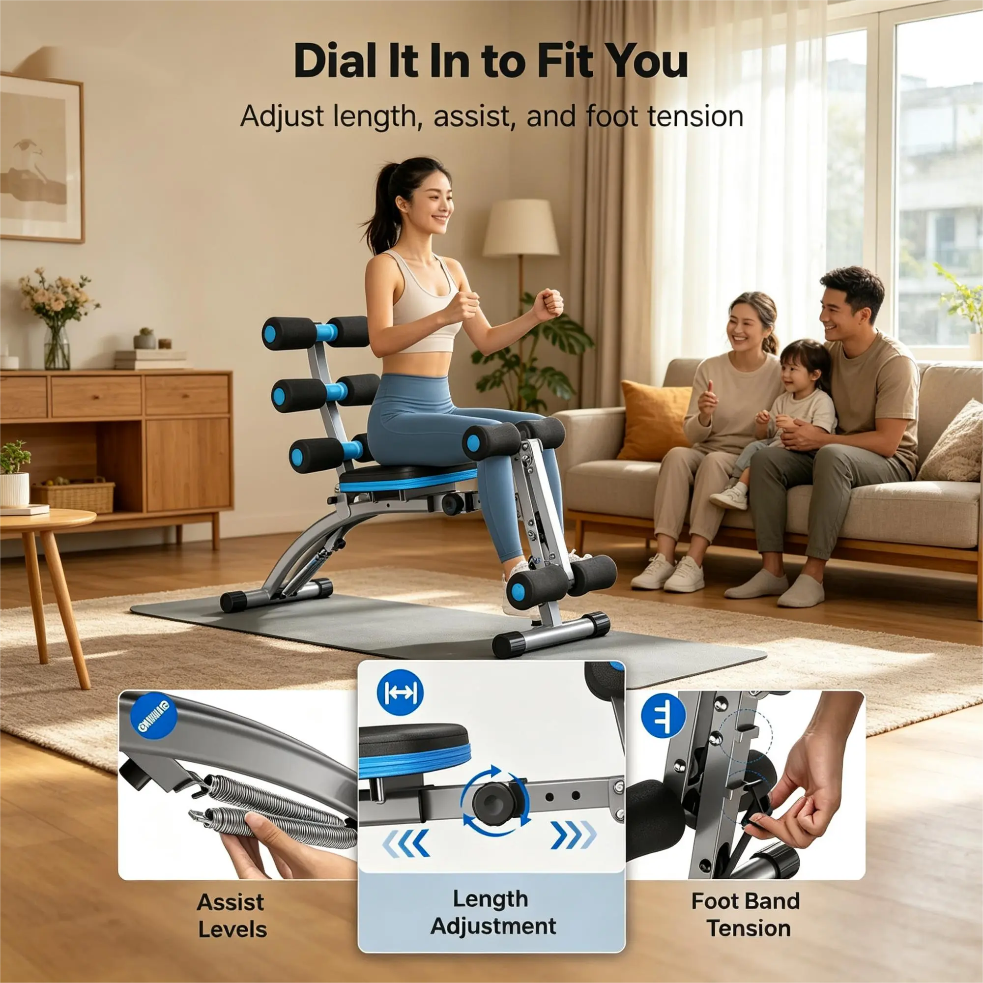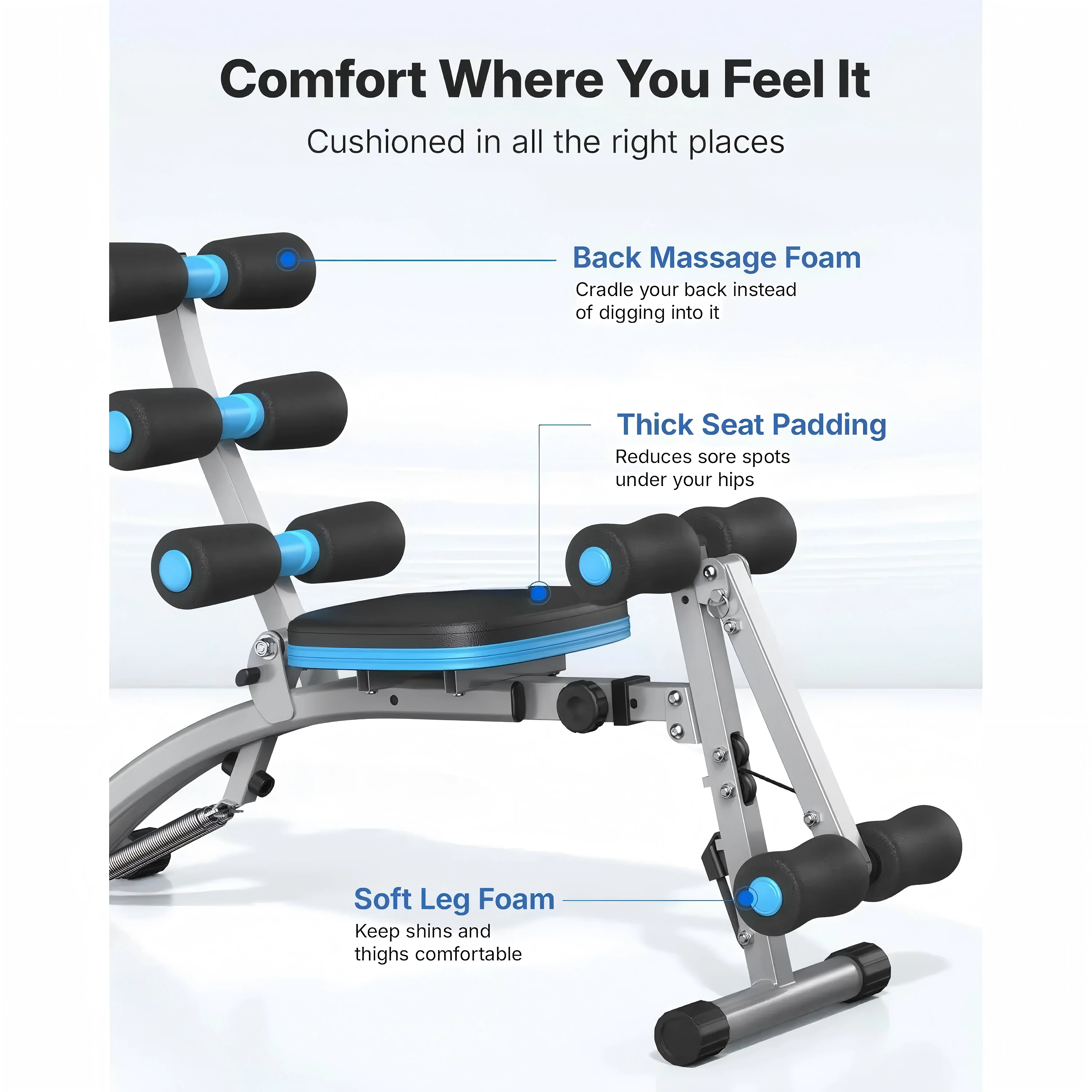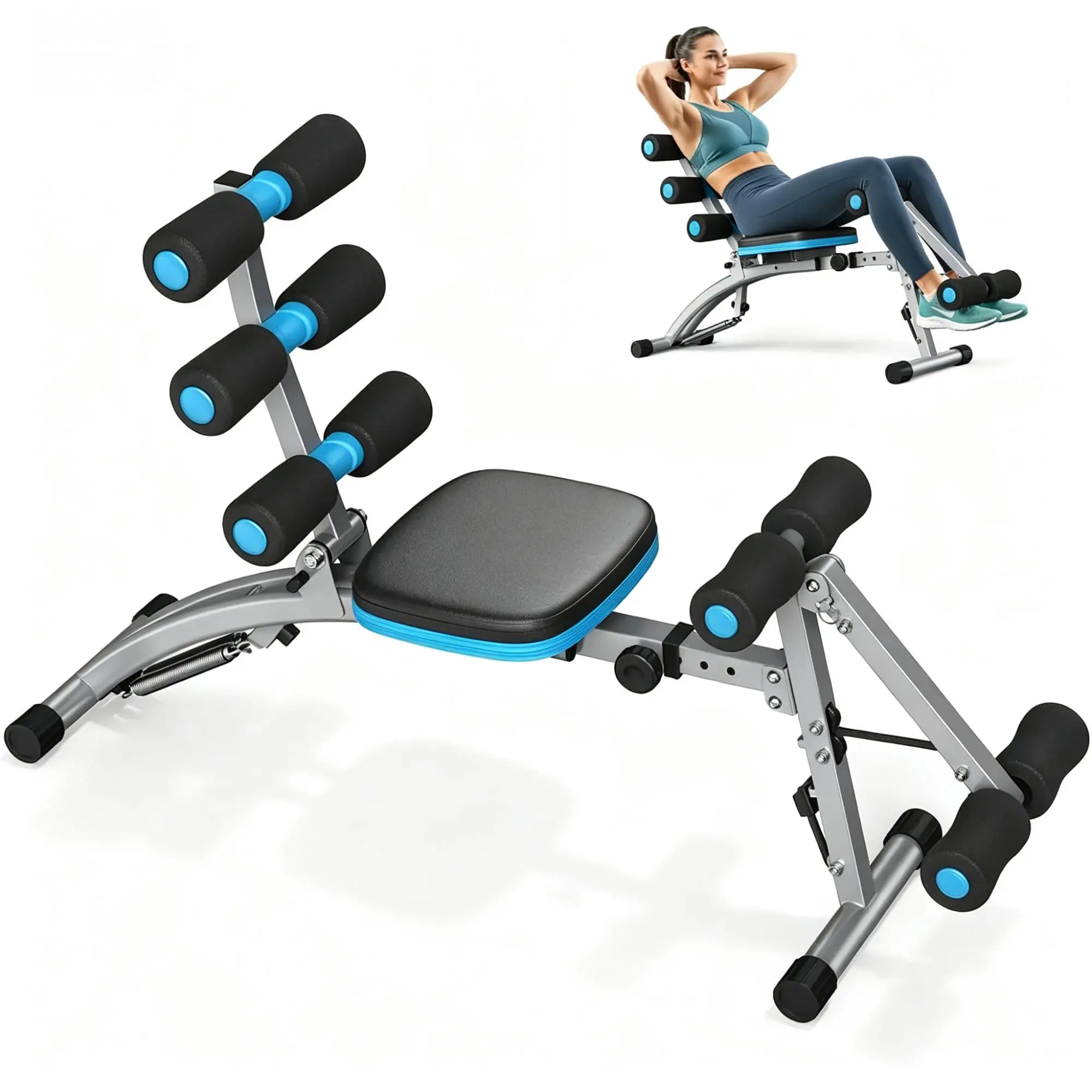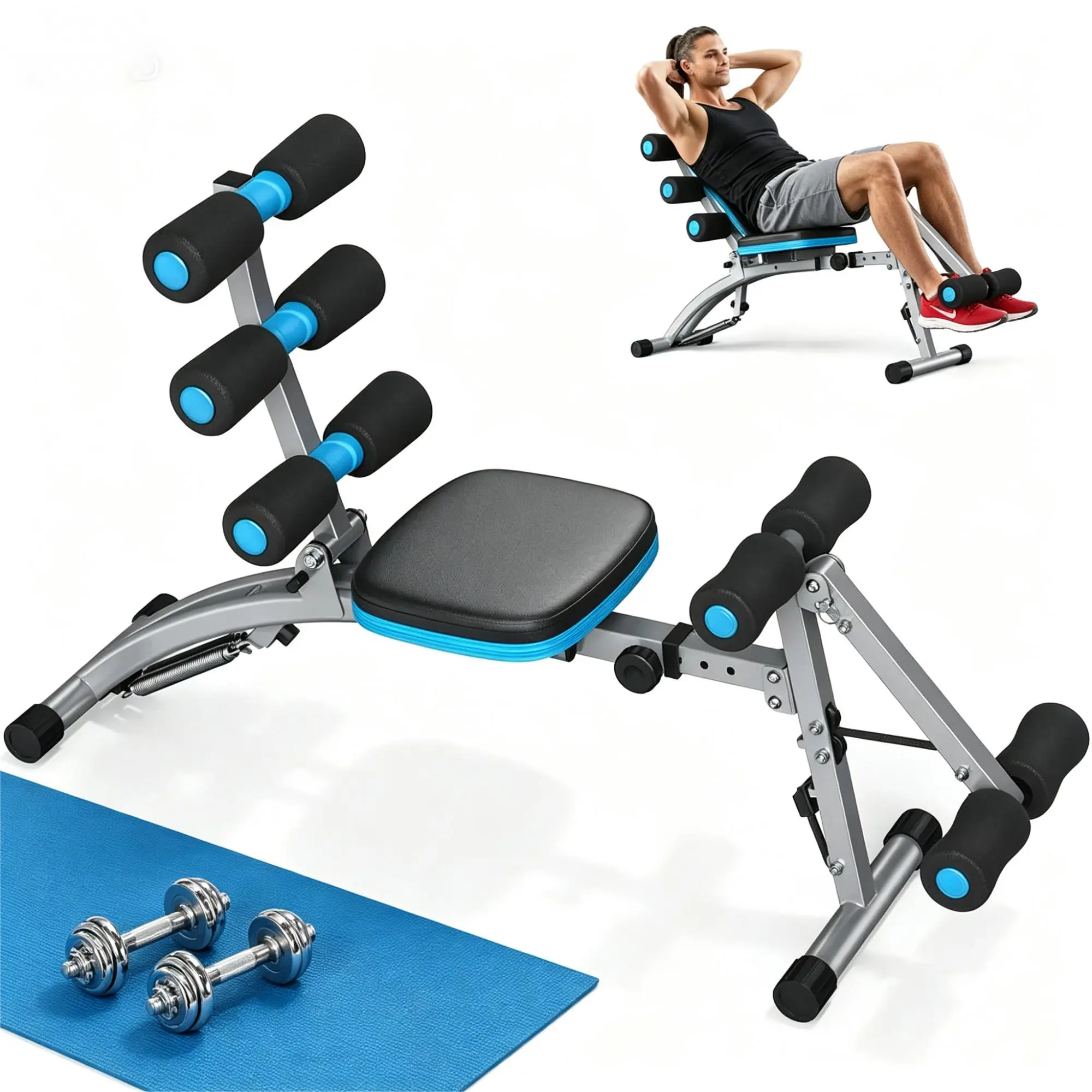 This multi-functional fitness bench is specially designed for home abdominal training, integrating multiple functions such as sit-ups, crunches and abdominal muscle training. It features a reinforced metal bracket structure that is sturdy and durable with strong load-bearing capacity to ensure exercise safety. Equipped with a thickened sponge pad and adjustable foam supports, it offers soft and comfortable touch while accurately fixing the leg posture to meet the training needs of people of different heights. The overall design is simple and foldable for easy storage, saving space. It can be easily placed in the living room, balcony or study, allowing you to start efficient fitness training anytime and anywhere to help shape an ideal body shape.