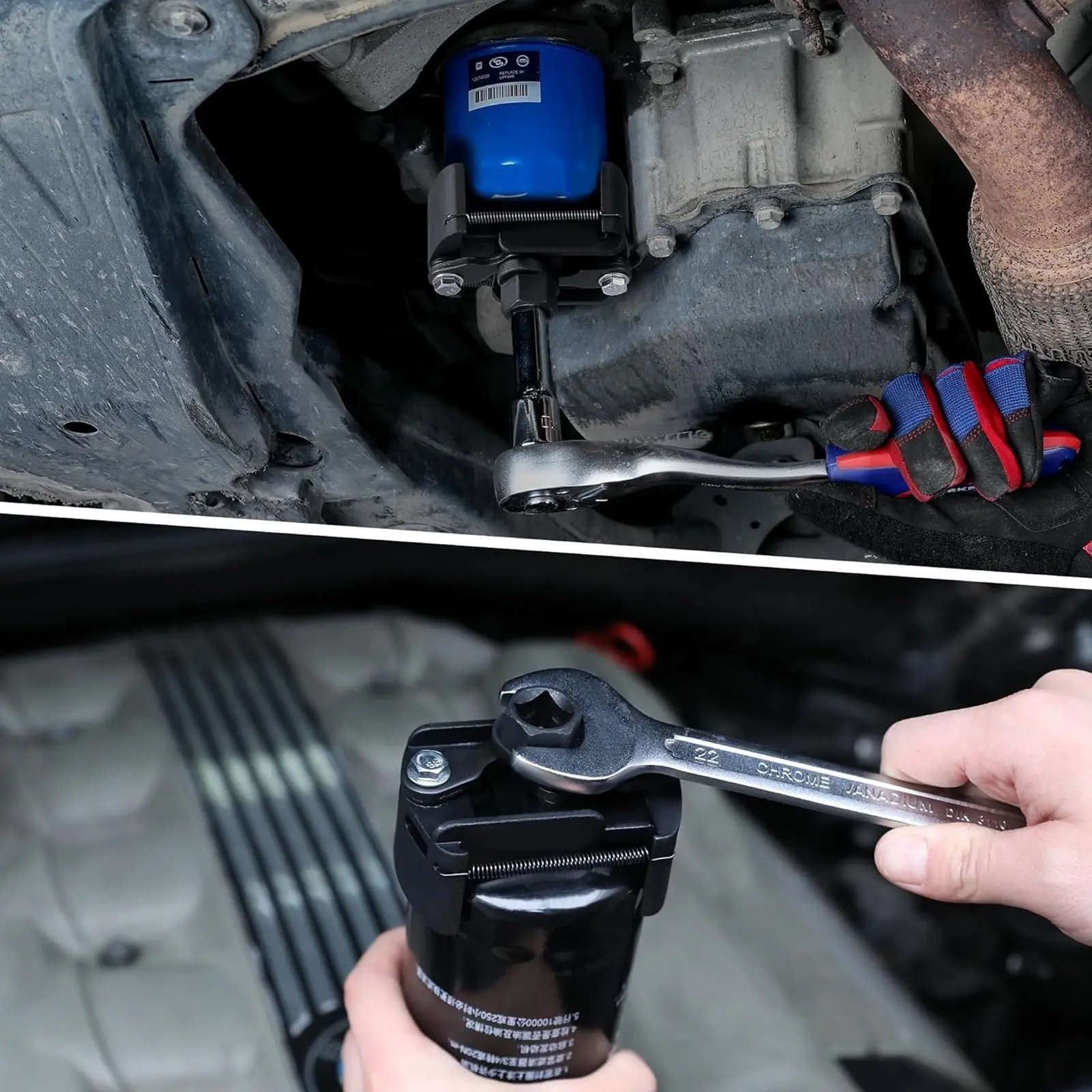 Universal Self Adjusting Oil Filter Removal Tool Heavy Duty Anti Slip Jaw Fits 60mm 80mm Spin On Filters with 12 Inch Drive for Easy Car Truck Oil Change