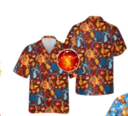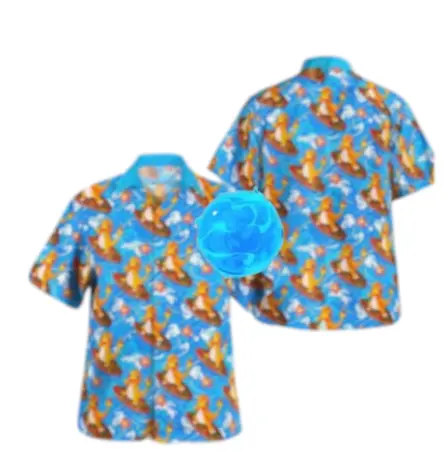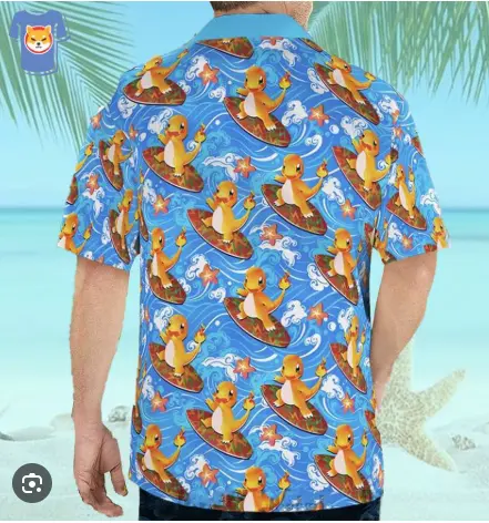 Charman Surfing Pkm Hawaiian Shirt, Cute Video Game Monster Apparel For Men Women, Fun Printed Summer Vacation Outfit