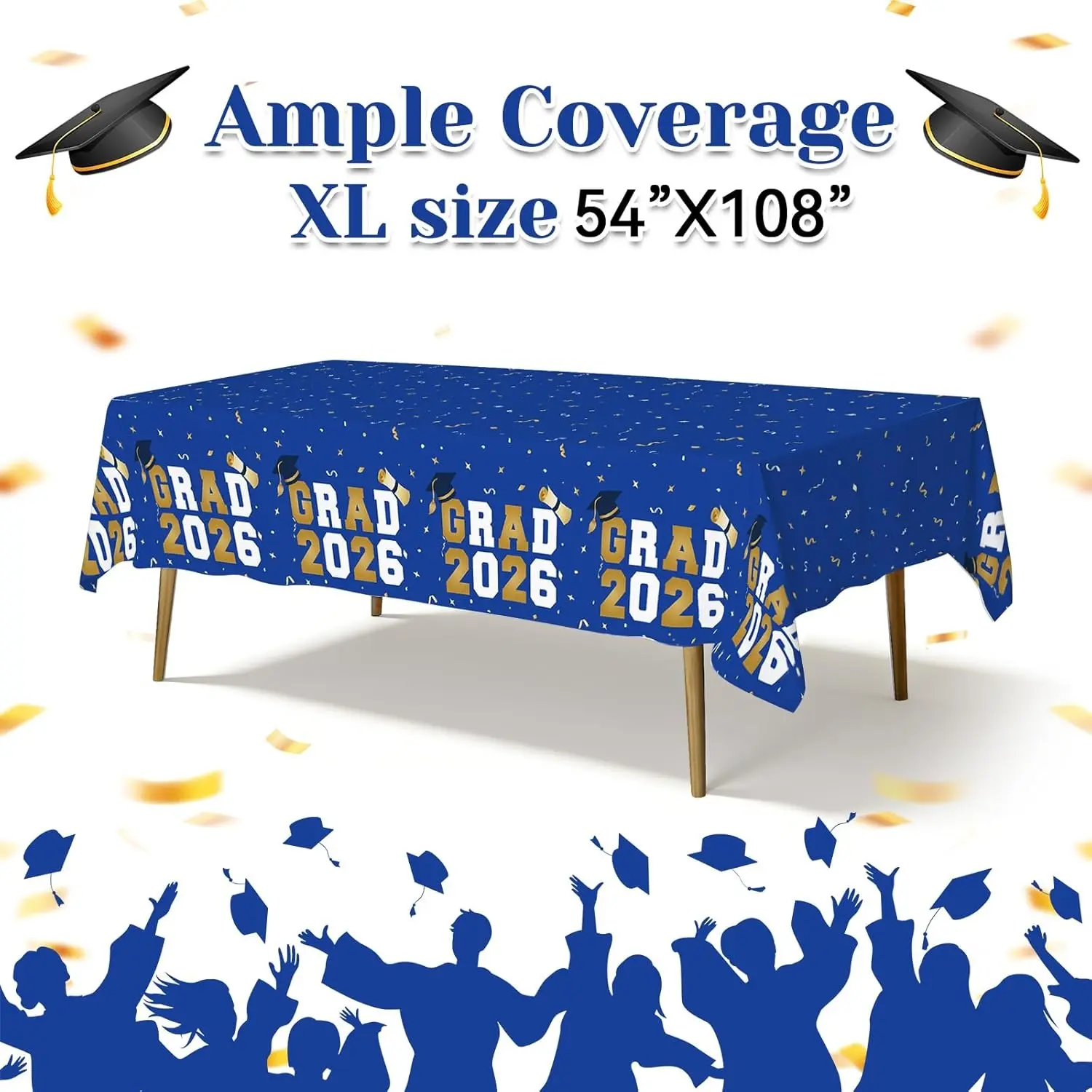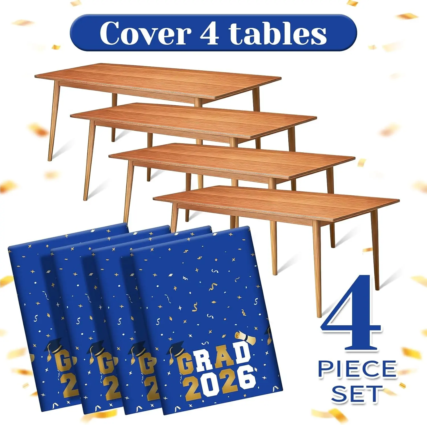 ·COMPLETE 4-PACK PARTY BUNDLE: Includes 4 matching rectangular graduation tablecloths (54"x108" each) - enough to cover buffet table, dessert station, gift area, and photo booth for unified graduation party styling.