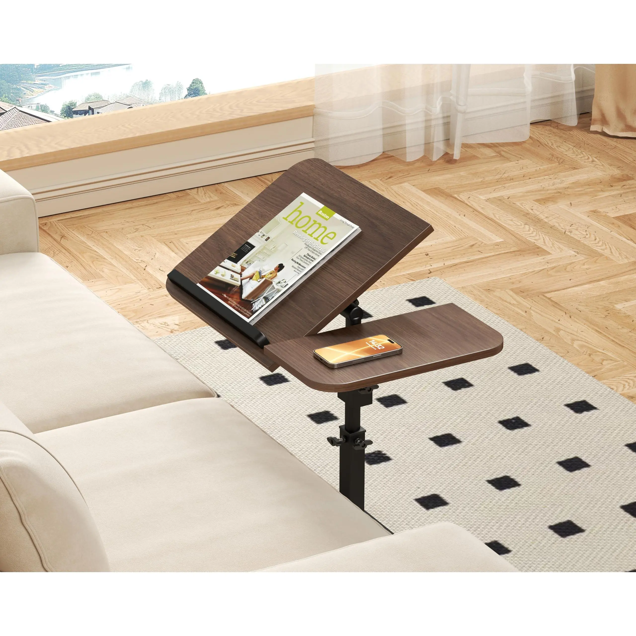·【Multi-functional Use】 Couch Side Table can store daily necessities such as laptops, magazines, snacks or drinks, so it can be widely used in various scenarios, such as side table, bed side table, patio side table, snack table, TV tray table, laptop table, dinner tray, bed side table or nightstand for daily use.