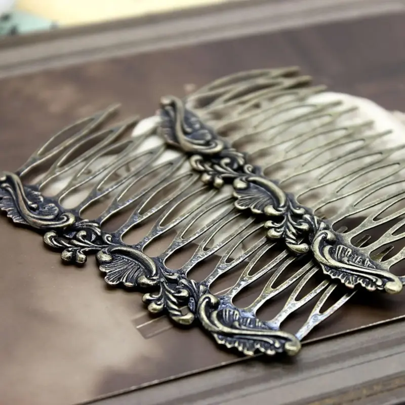 Alloy Filigree Hair Comb Setting, 1 Count Metal Handle Comb, Heatless Styling Tool for Women & Girls, Hair Styling Accessories for Daily Use, Clip In Claw
