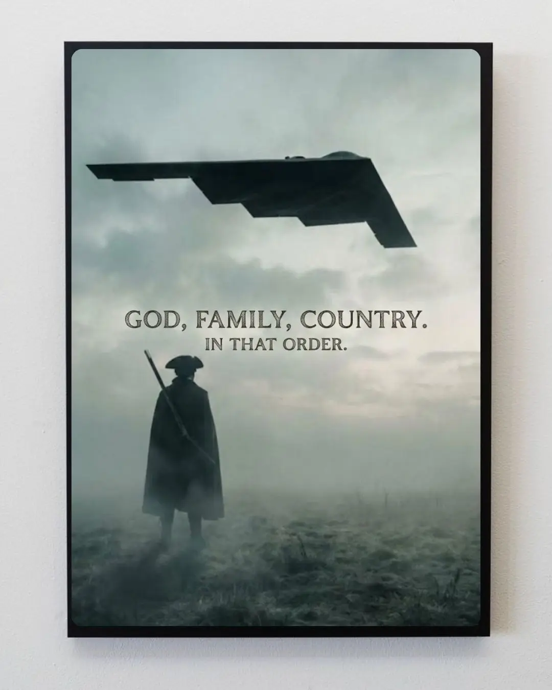 God, Family, Country. In that order Freedom B2 Poster, USA Patriotic Aircraft Wall Art, Vintage Military Aviation Print, American Airpower Home Decor