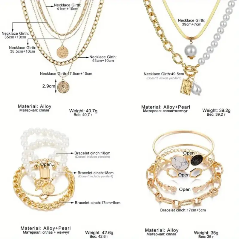 The image showcases the variety of jewelry included in the set, including necklaces, bracelets, rings, and earrings.