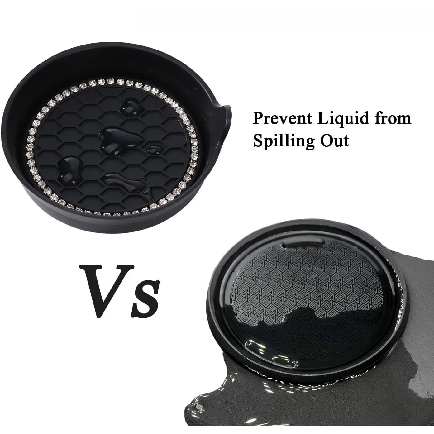 Featuring a deep cup shape design with a non-slip base, these Bling Crystal Rhinestone Car Cup Coasters effectively catch spills, condensation, crumbs, and other messes, keeping your car clean. They also prevent cans and bottles from scratching or damaging your car’s cup holder.