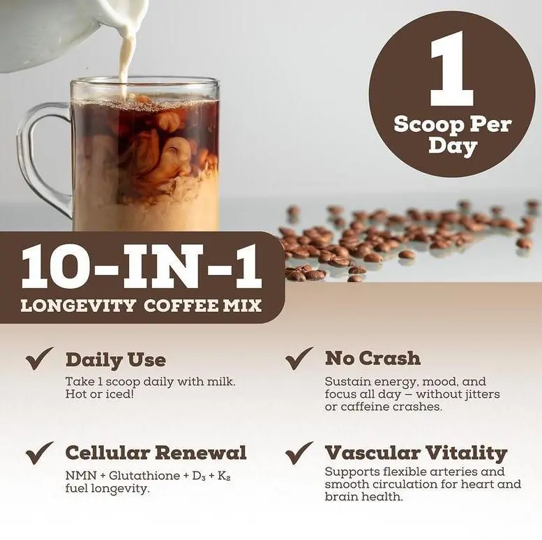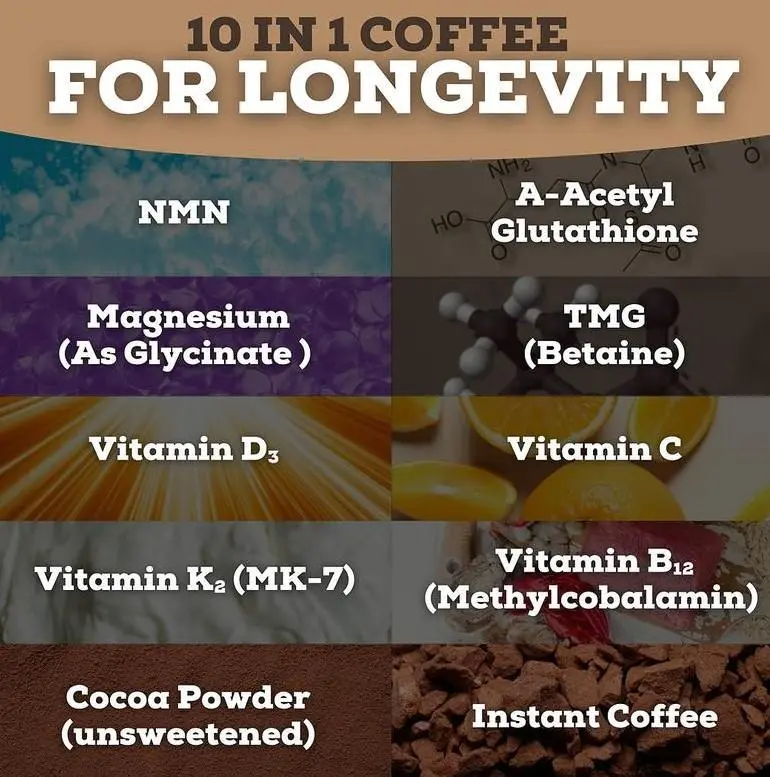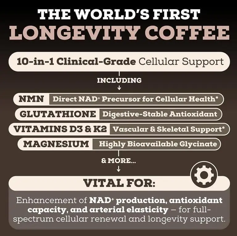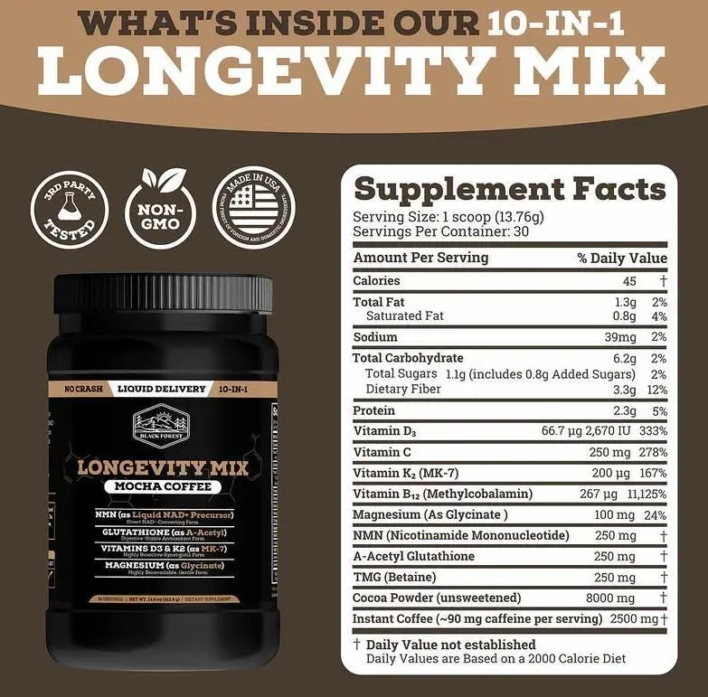 Black Forest - Longevity Coffee (10-In-1) - NMN, Glutathione, Magnesium Glycinate, TMG, Vitamin D3, C, K2, B12, Cocoa Powder, Instant Coffee | 30 Servings - Gluten - Free Sugar - Free Non GMO