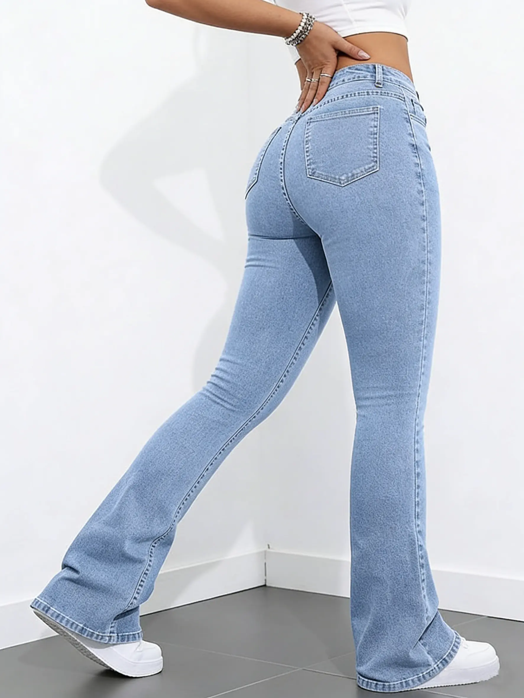 Discover the Women's Blue Washed Flare Jeans, perfect for a chic, casual look. These jeans feature a flattering flare design that adds a touch of elegance to any outfit. The blue wash gives a timeless, versatile appeal, making them a staple in your wardrobe. Ideal for everyday wear, these jeans offer both style and comfort.