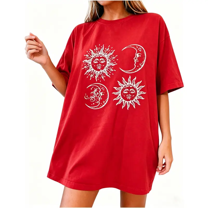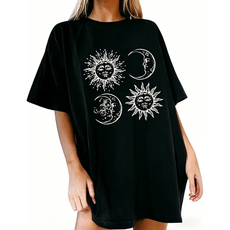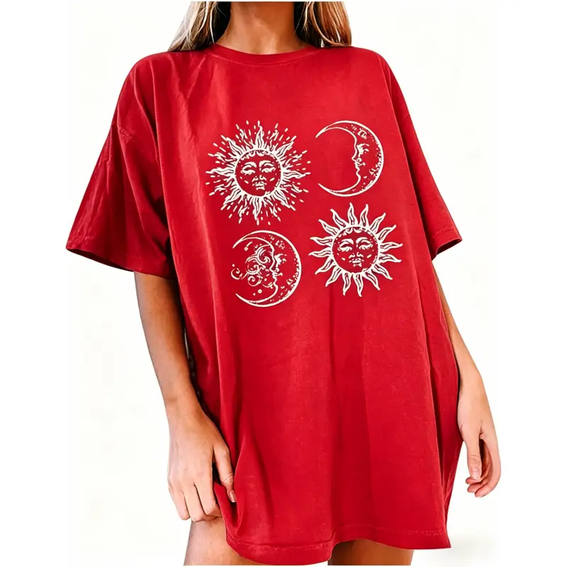 5. Womens Crewneck Short Sleeve T-Shirt,Oversized Summer Tops,Unisex Solid Printed T-shirt