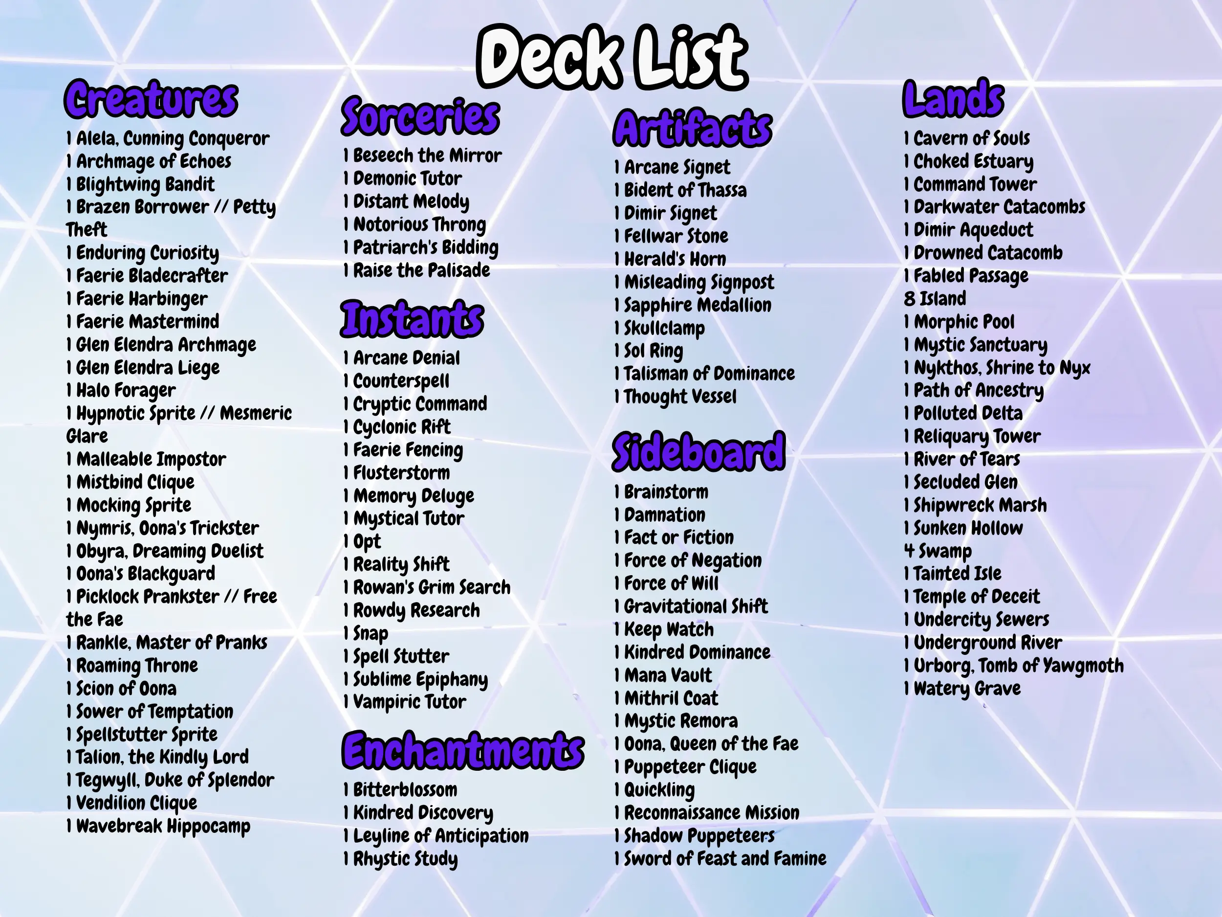 At its core, this deck is a tempo-control engine — playing almost entirely at instant speed, disrupting opponents while building a flying army. With every spell cast on opponents’ turns, you generate faerie tokens, turning interaction into board presence.