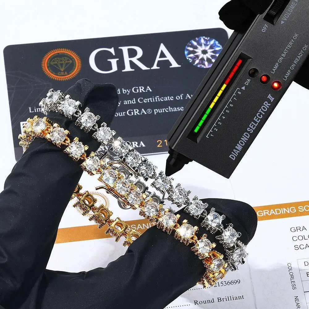 3/4/5MM VVS Moissanite Tennis Bracelet Custom Made Pass Diamond Tester 925 Sterling Silver Hip Hop Jewelry Tennis Chain Necklace