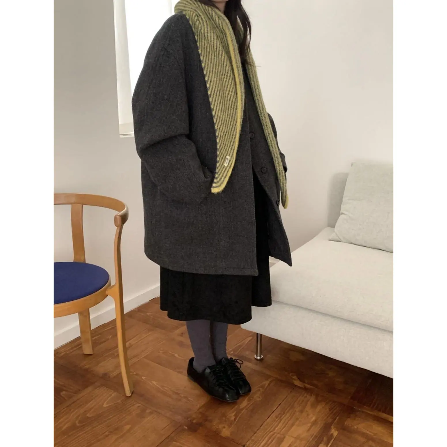 Korean quality blended shawl [gray striped]