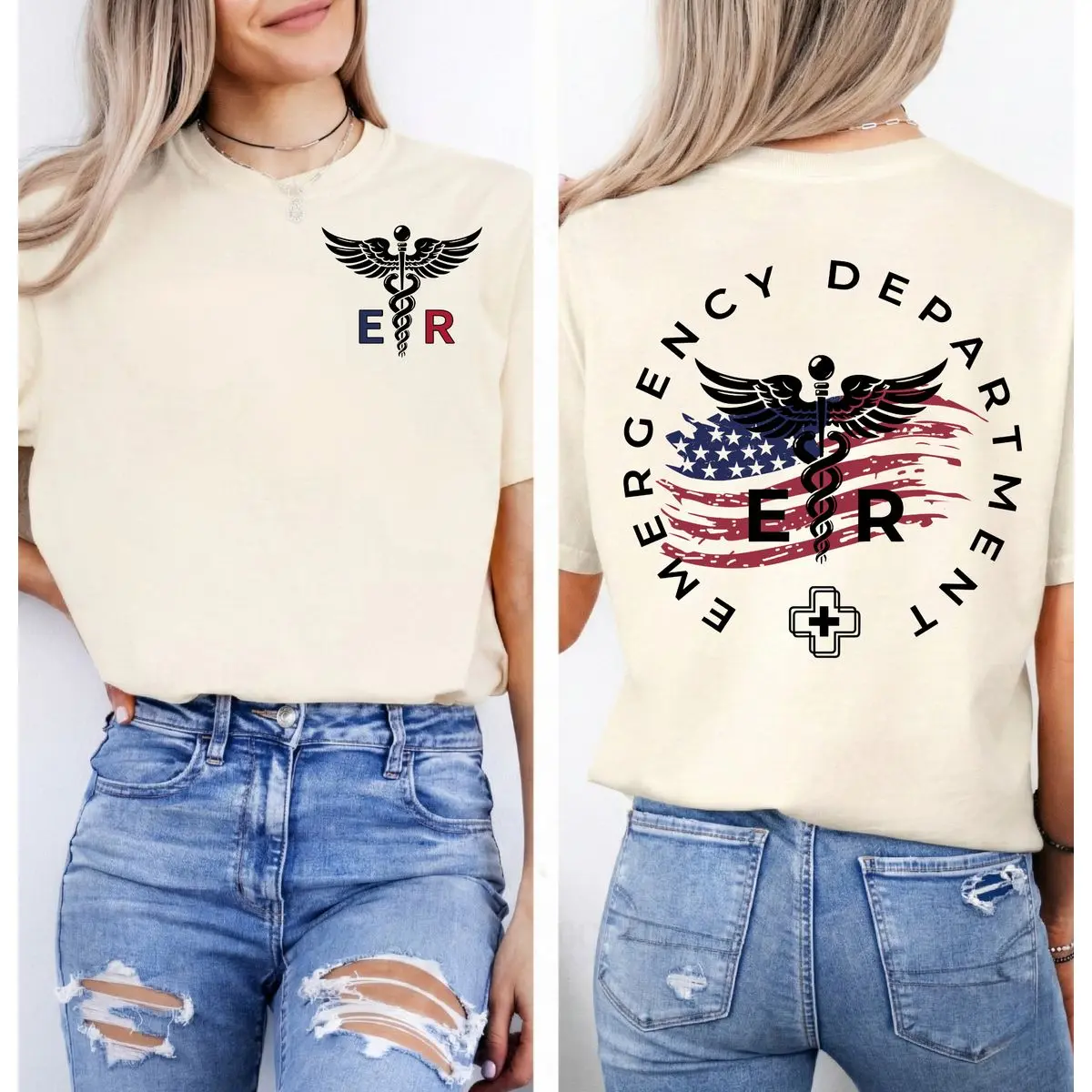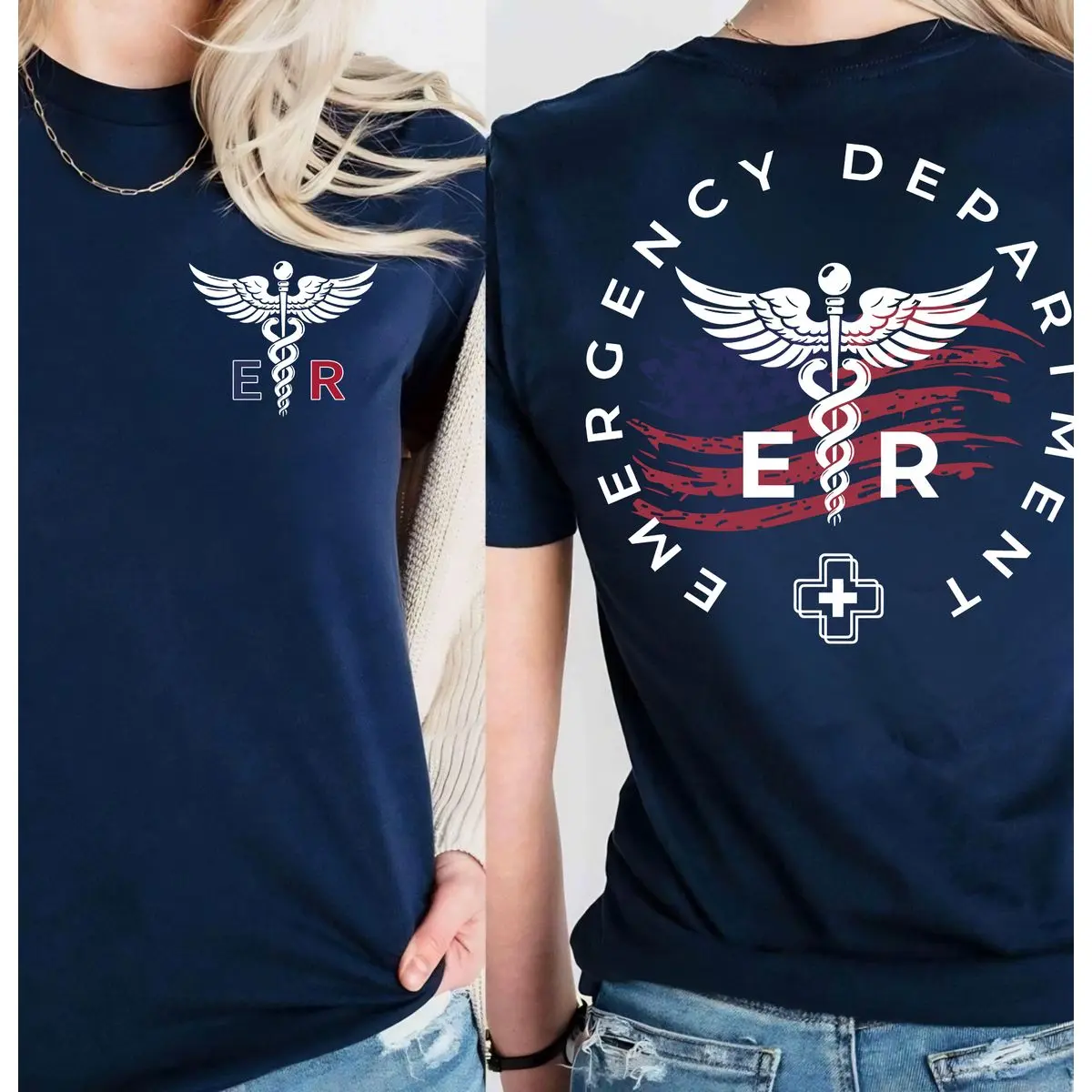 Emergency Department Nurse 4th July T Shirt, Er Nurse Shirt, Emergency Room Medicine Nurse Tee, Emergency Nurse Gift, Rn Nursing Gifts For Her For Him, Unisex Casual Graphic T-Shirts