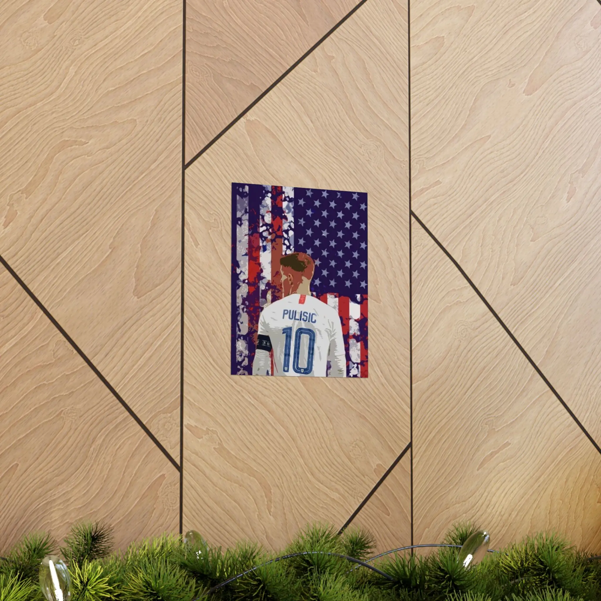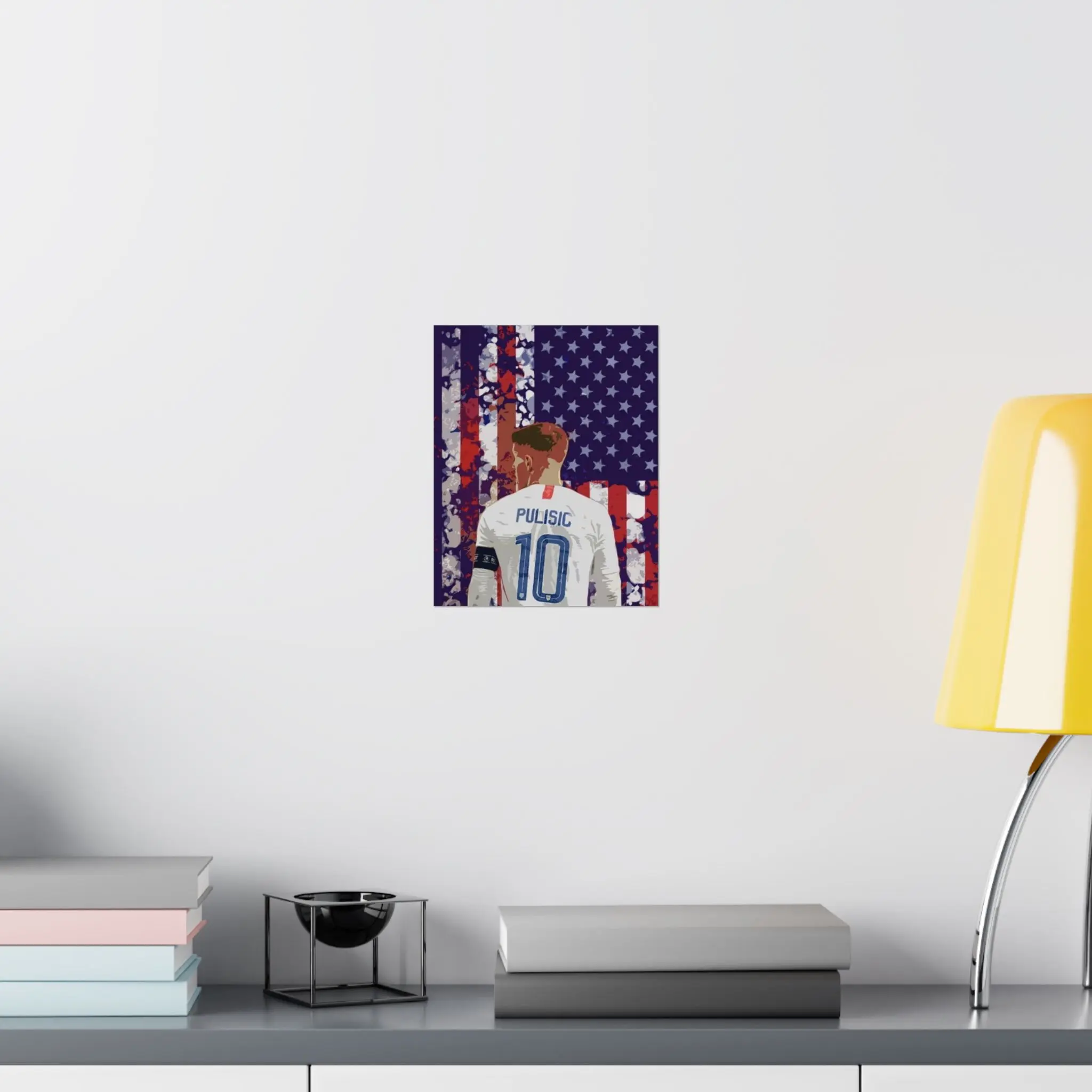 1. IDEA DESCRIPTION Honor the heartbeat of American soccer with our "USA Soccer Legend" commemorative poster. This design captures the unwavering leadership and grit of the national team's iconic Number 10 captain. Featuring a powerful rear-view silhouette of the star player in the classic white national kit, the artwork is set against a stylized, distressed American flag background. It perfectly blends the "Patriotic Core" aesthetic with modern athletic energy, symbolizing the hope and ambition of a nation heading into the 2026 global tournament. This is the ultimate statement piece for any fan who bleeds red, white, and blue.