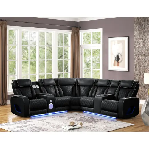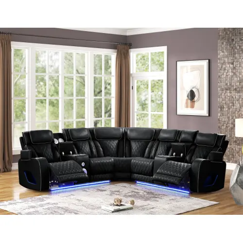 Niccae Fortuner Modern Style power recliner sectional with Bluetooth speaker and LED made with wood & metal, Massage Function Included -Black (NJ Inventory)