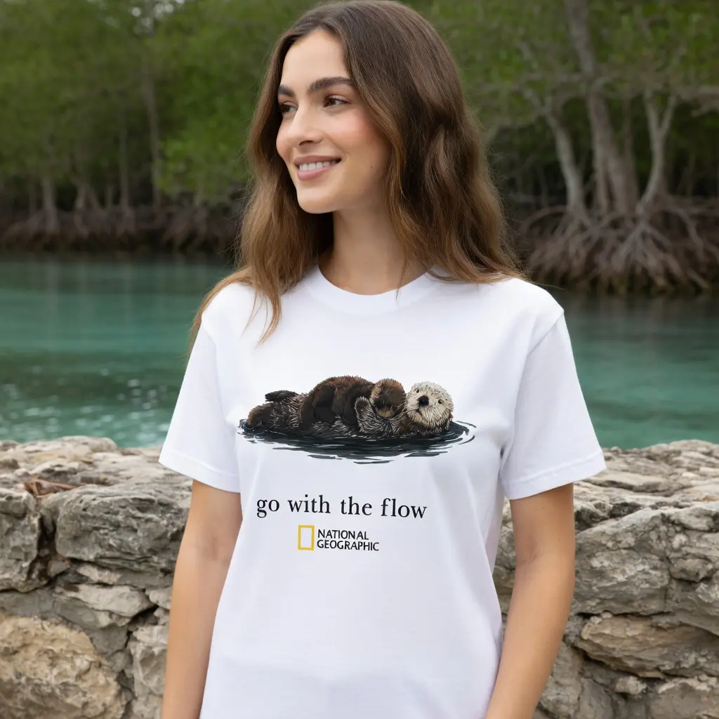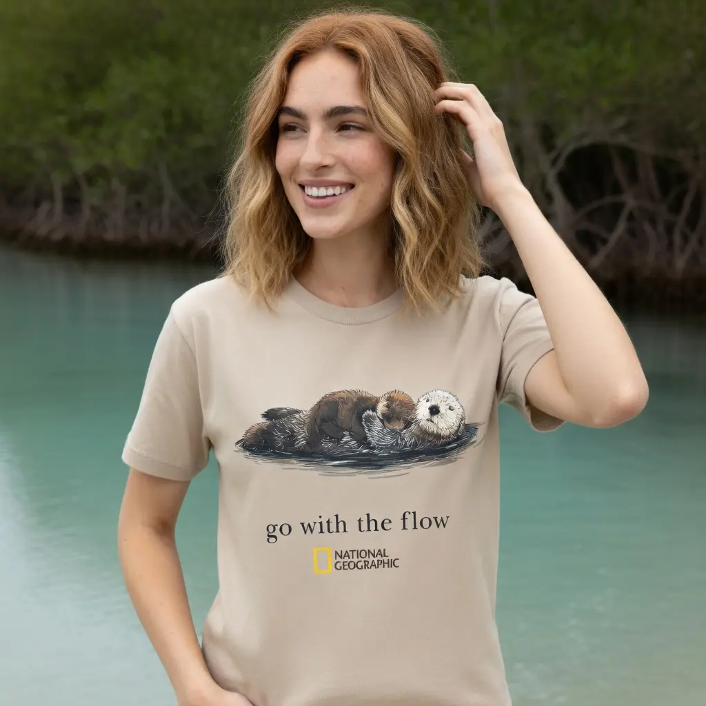 Go With the Flow Otter Graphic T-Shirt, Cute Nature Animal Tee, Relaxed Casual Wildlife Shirt
