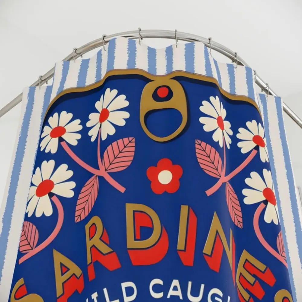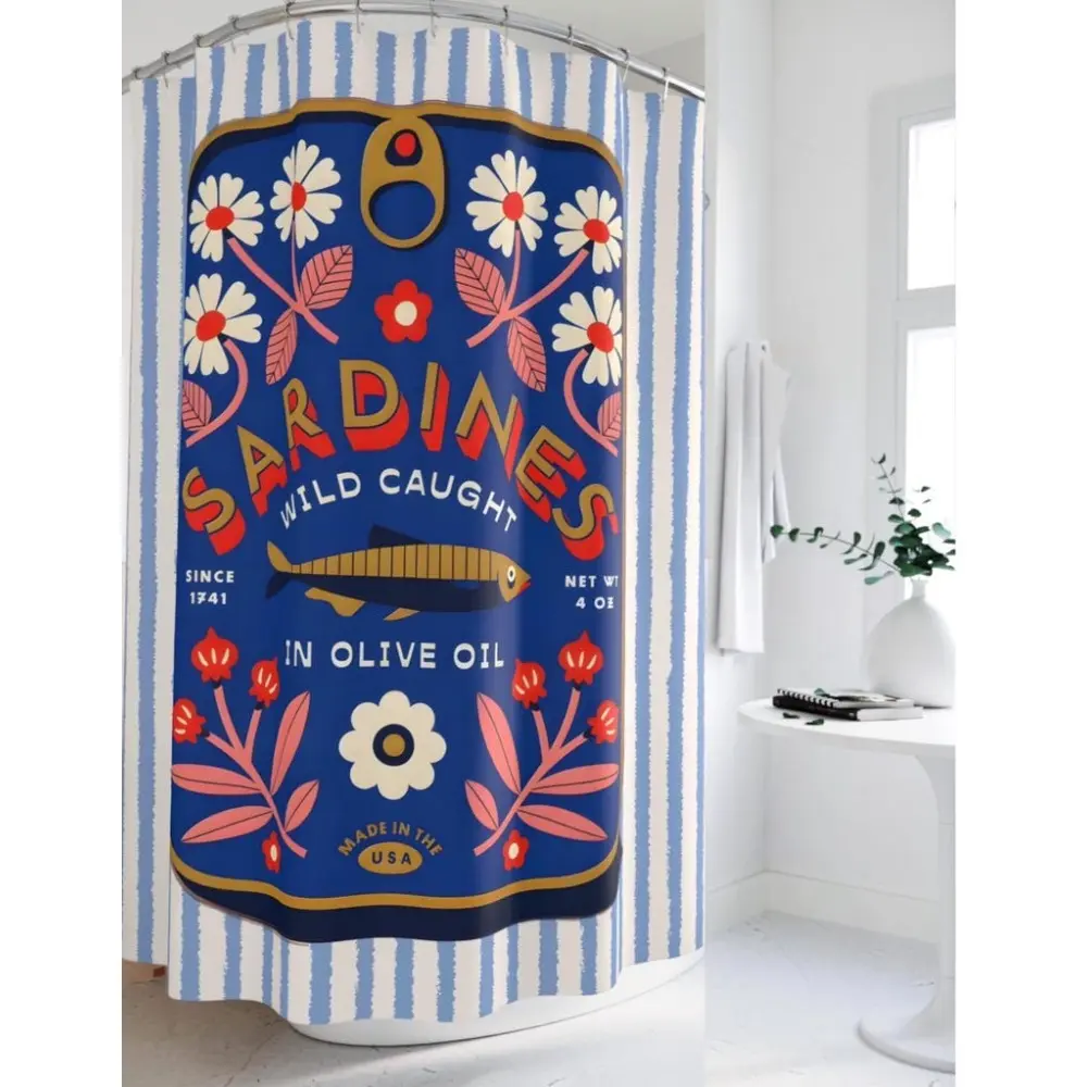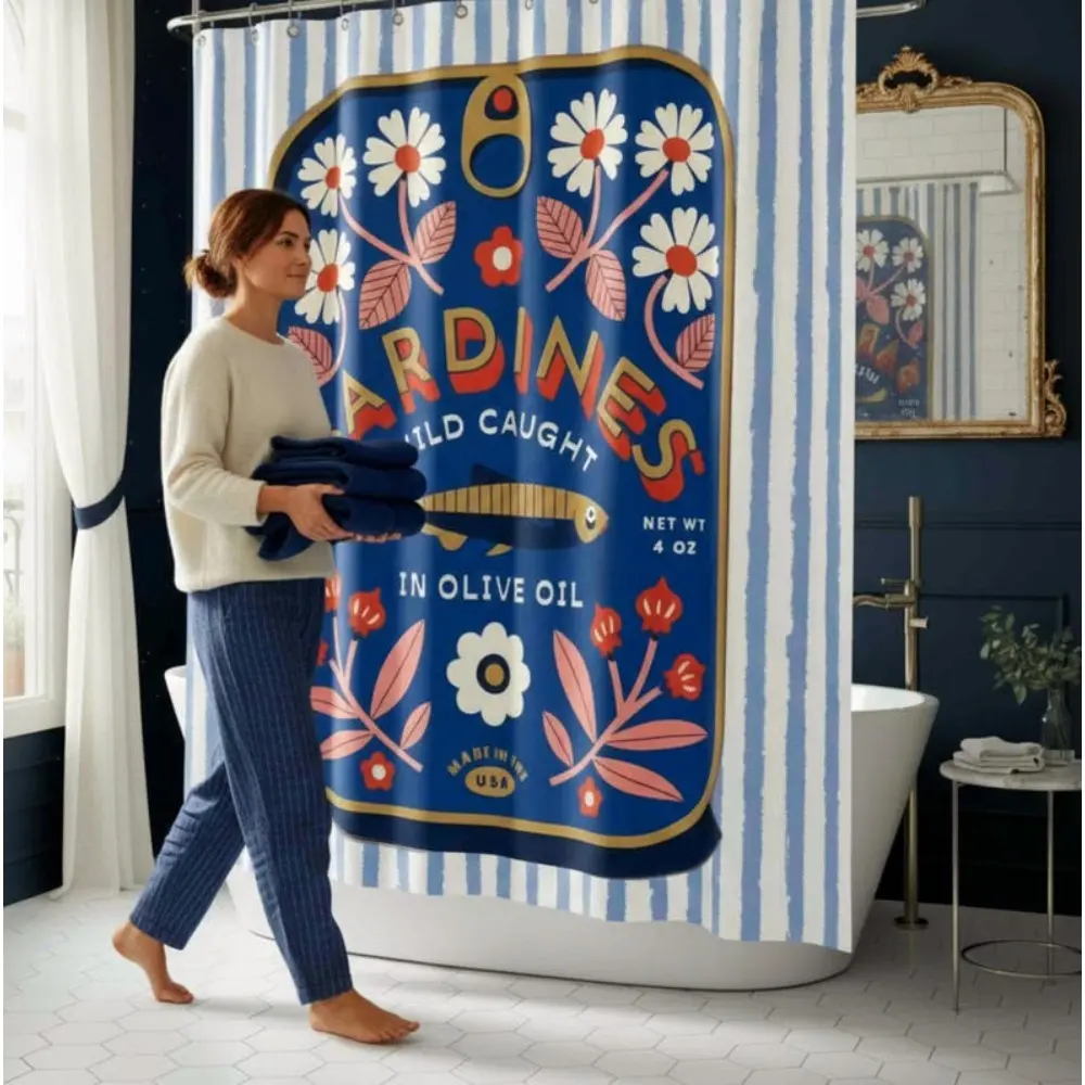 Tinned Fish Shower Curtain Sardine Bathroom Decor Bold Colorful Nautical Theme Coastal Ocean Lover Gift Funky Retro Sea Life Bath Decor