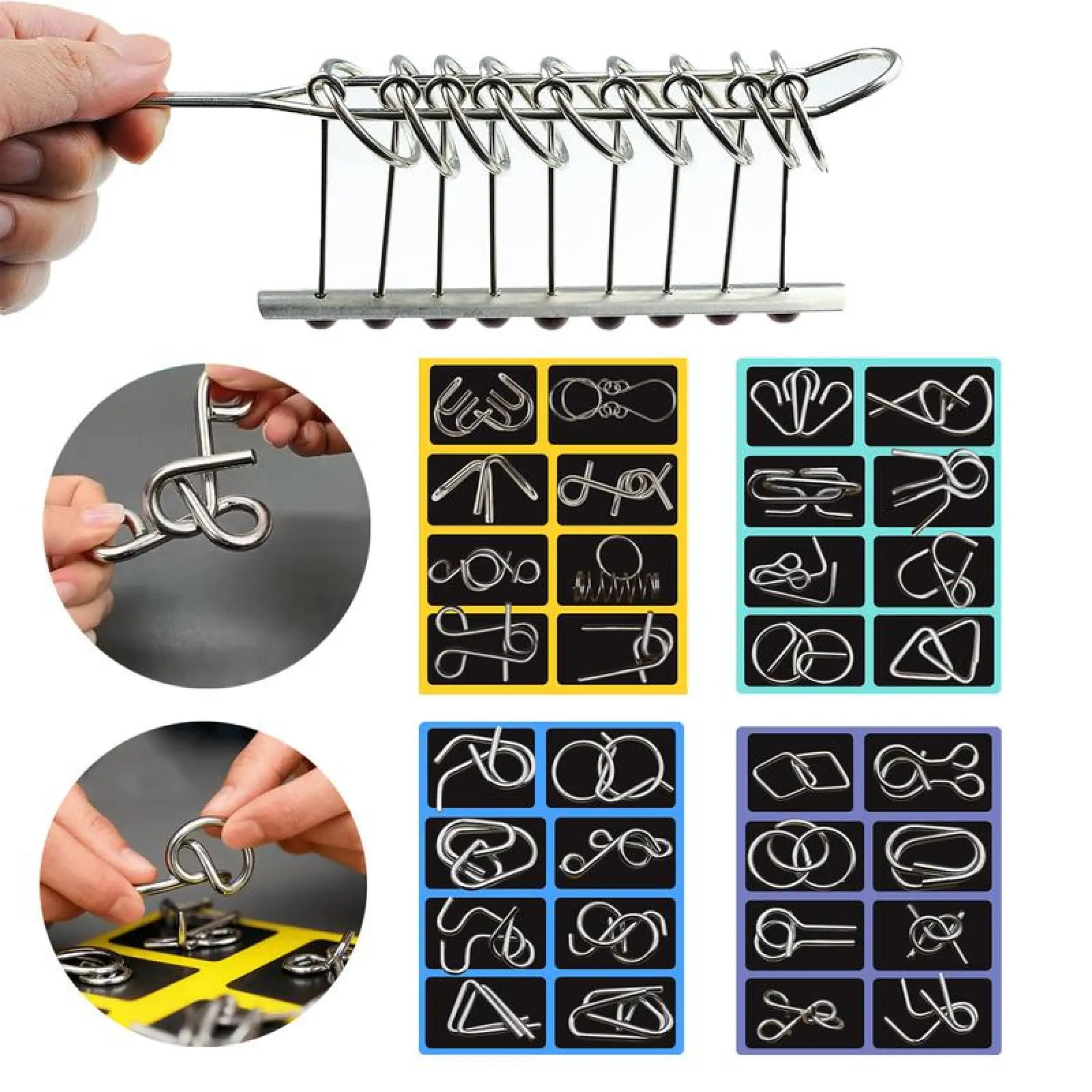 Brain-Teasing Metal Wire Puzzles – Challenge your mind with these addictively fun metal puzzles!Perfect for fidgeting, travel, or family game nights – each set includes over 8 unique groups of brain teasers to solve.