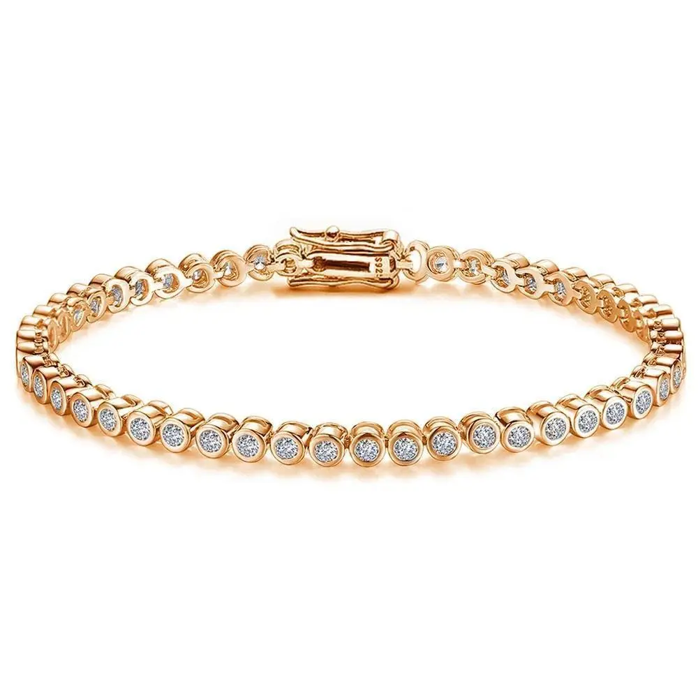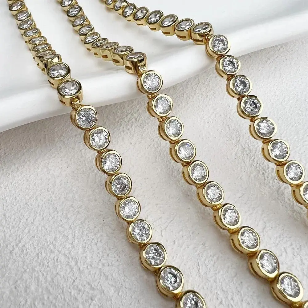 2/3mm Certified Moissanite Tennis Bracelet for Women 925 Sterling Silver Round Bubble Bezel Setting Diamond Bracelets Bangle