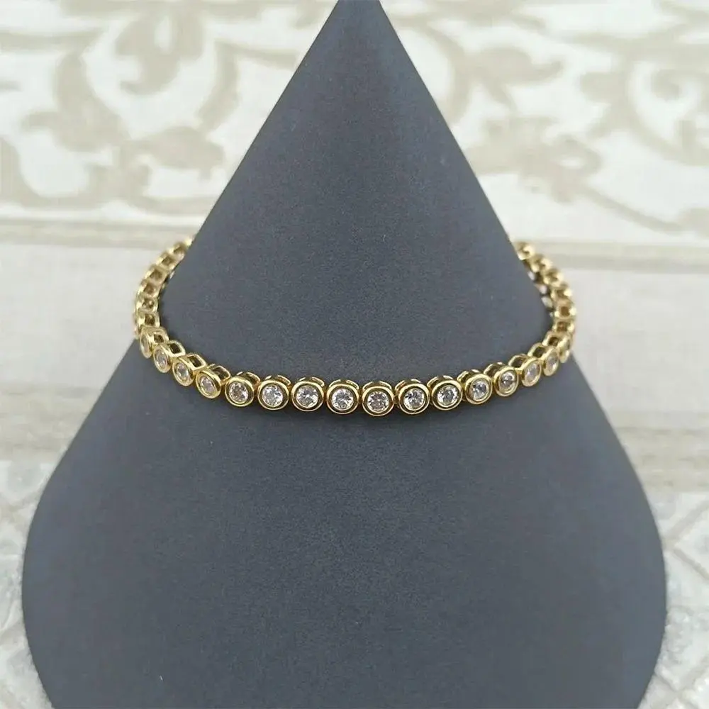 PAVOI 14K Gold Plated 2mm Cubic Zirconia Honeycomb Tennis Bracelet - Gold Bracelet for Women