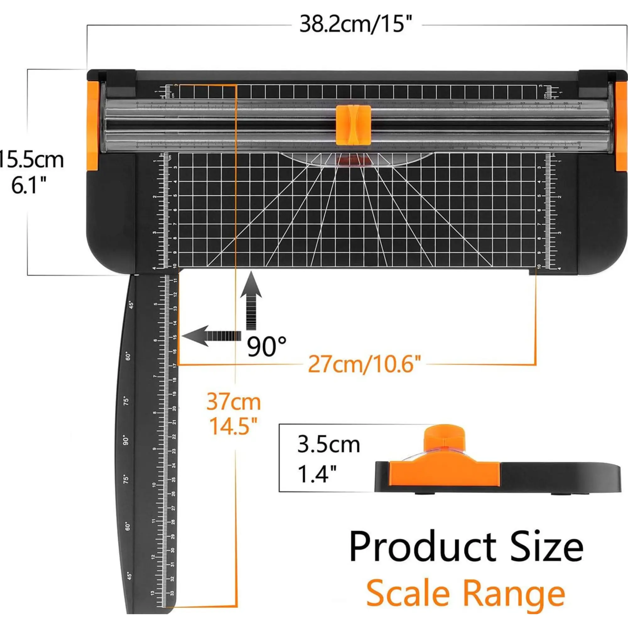 ·Features an adjustable measuring plate with 45 to 90-degree angles and both cm/inch scales for precise trimming.