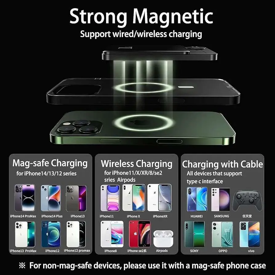 ·Equipped with 22.5W magnetic charging, it offers fast charging for your iPhone. 🔋