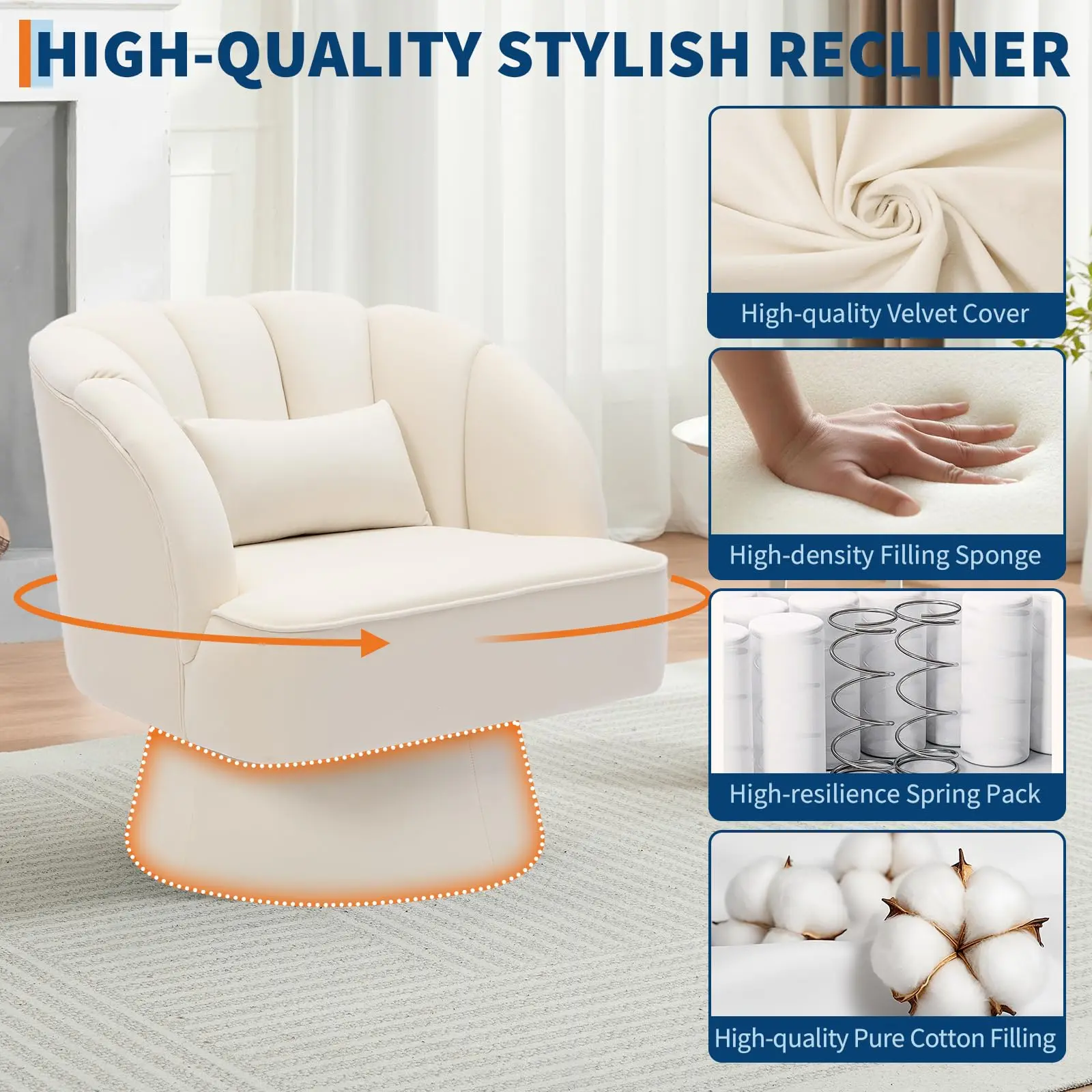 ·1.360° Smooth Swivel: Effortlessly rotate in any direction with a quiet, sturdy swivel base—ideal for living rooms, bedrooms, nurseries, or home theaters.