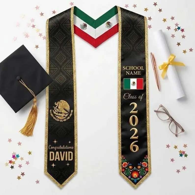 5. Mexican Flag Graduation Sash 2026, Custom Mexican American Graduation Sash, Mexican Stole, Mexican Student Stole 2026, Graduation Gift Graduation Stole
