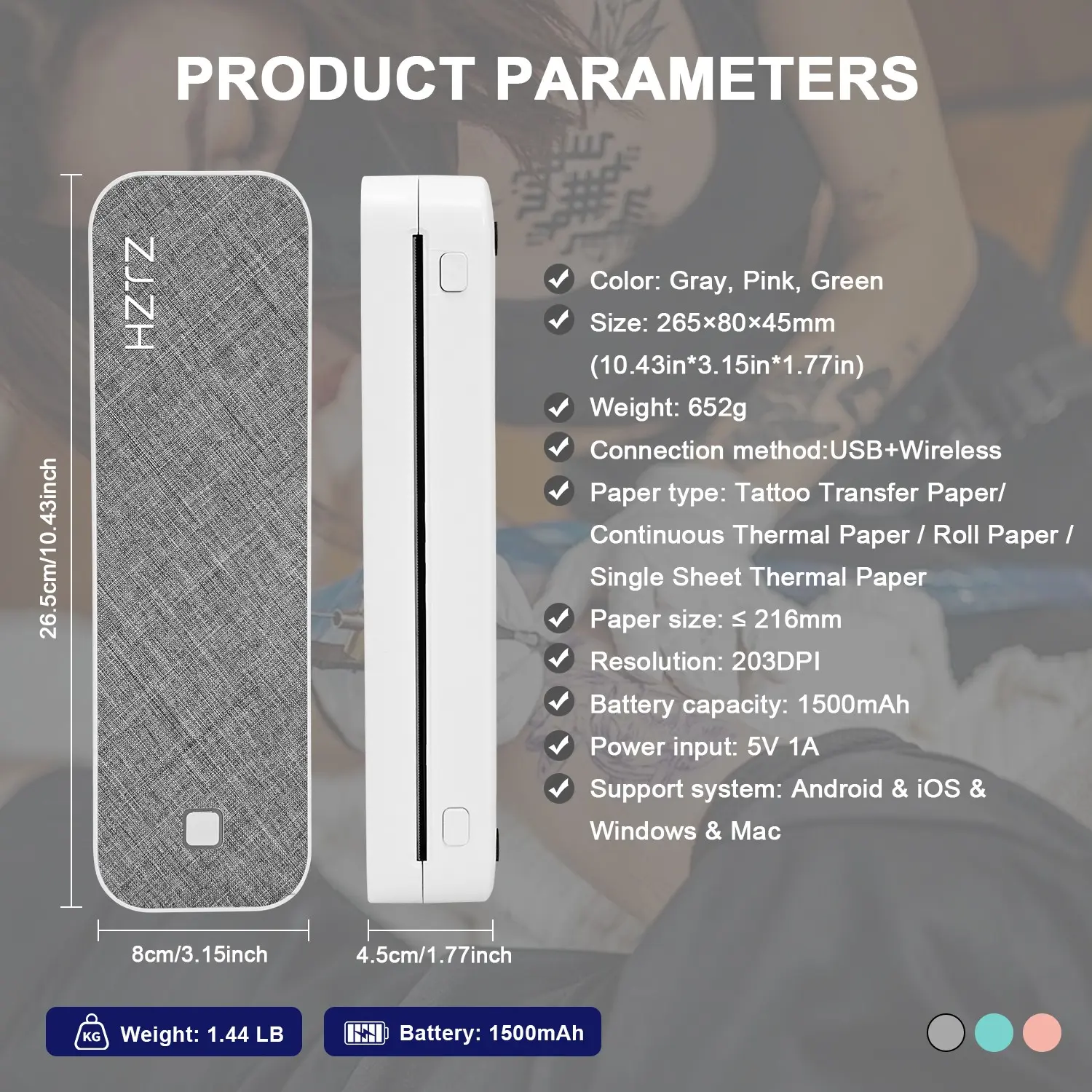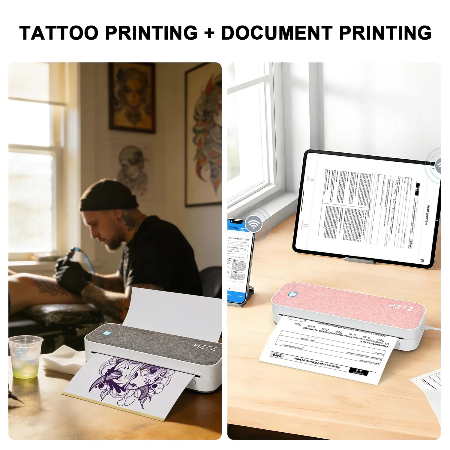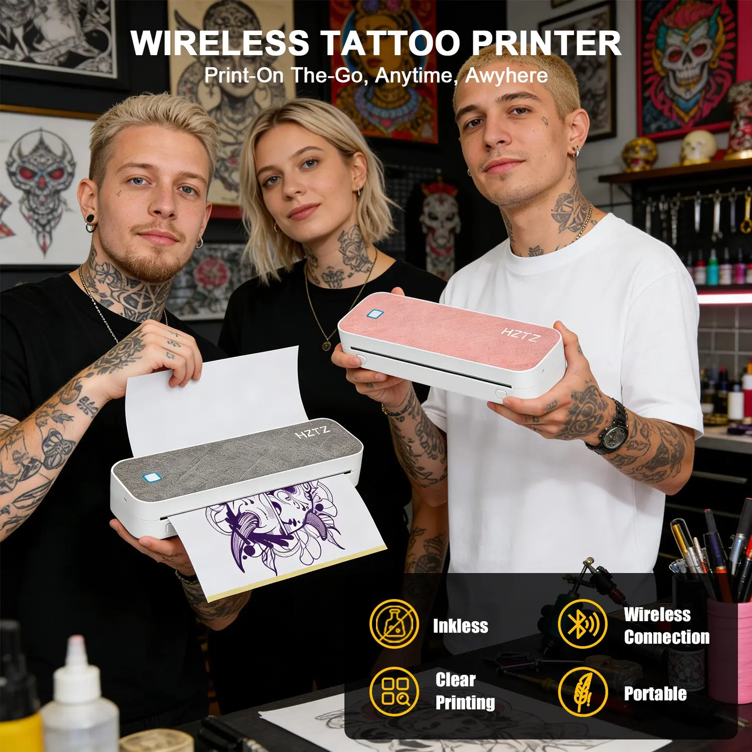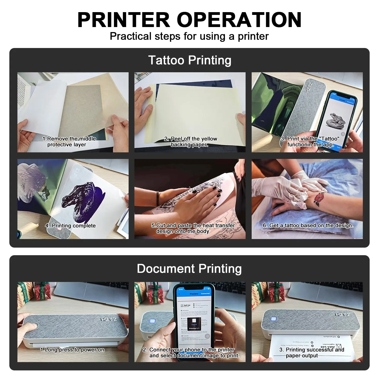 HZTZ Portable Bluetooth-compatible Tattoo Template Printer D80, Includes 10 A4 Transfer Papers, Supports Thermal Paper, Compatible with iOS, Android, PC