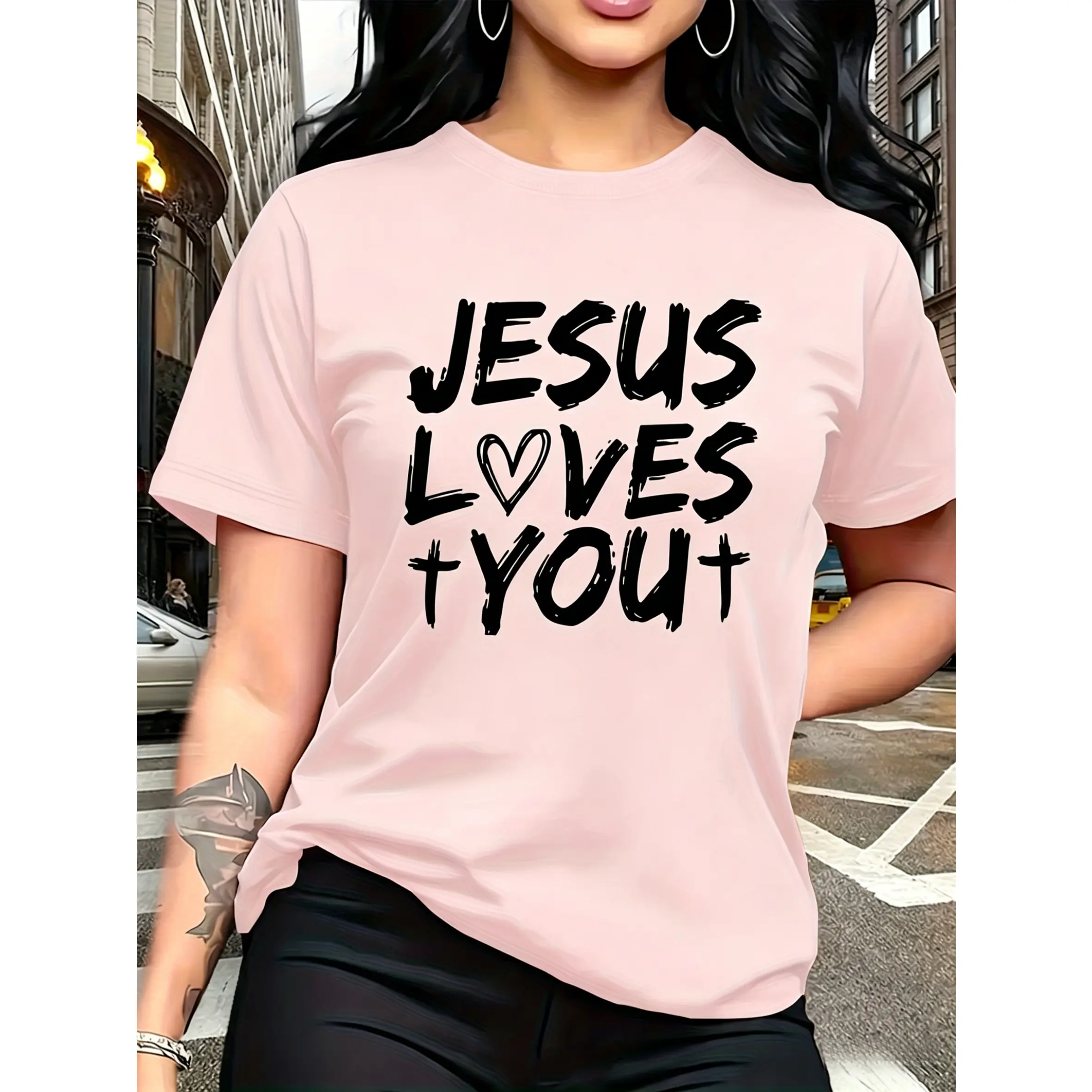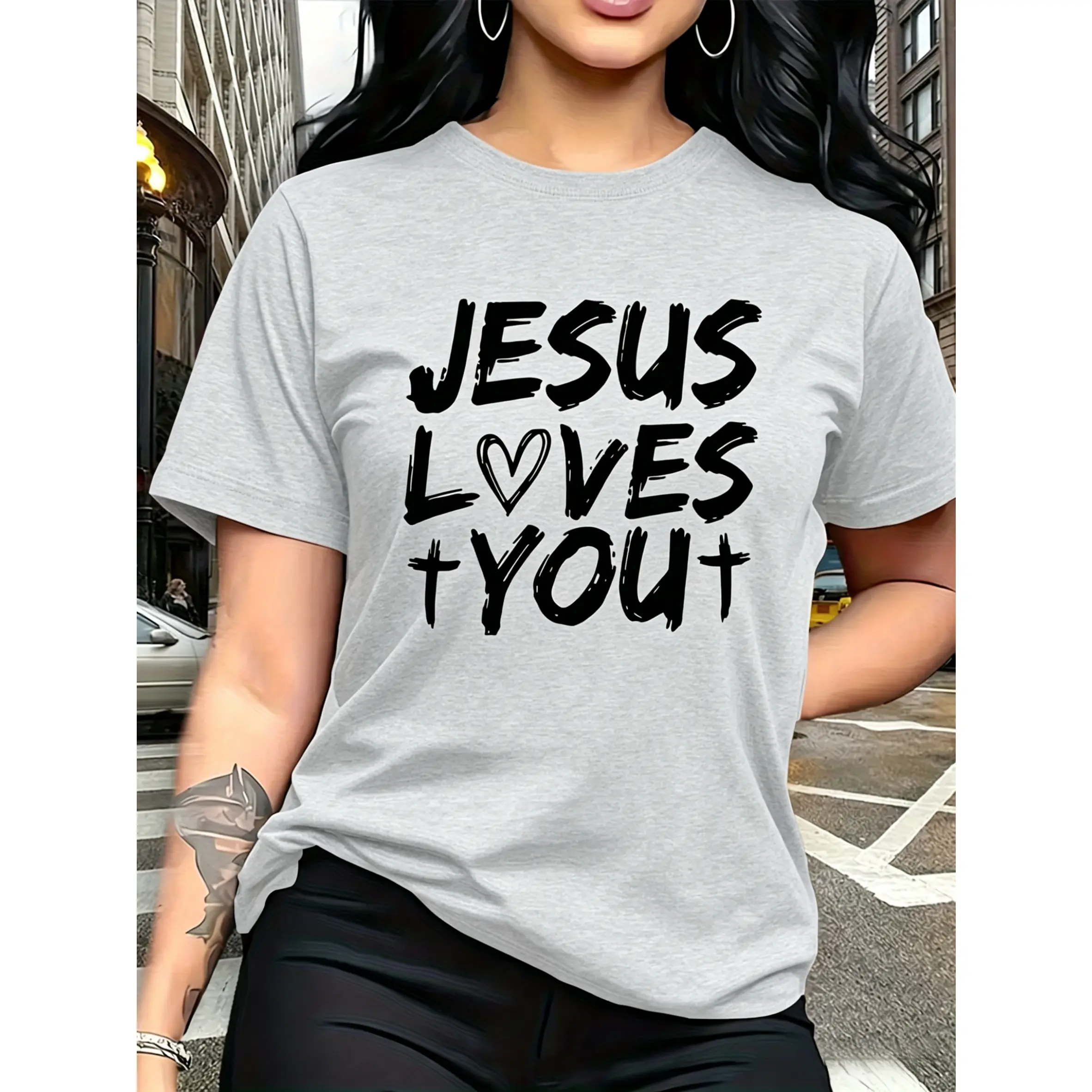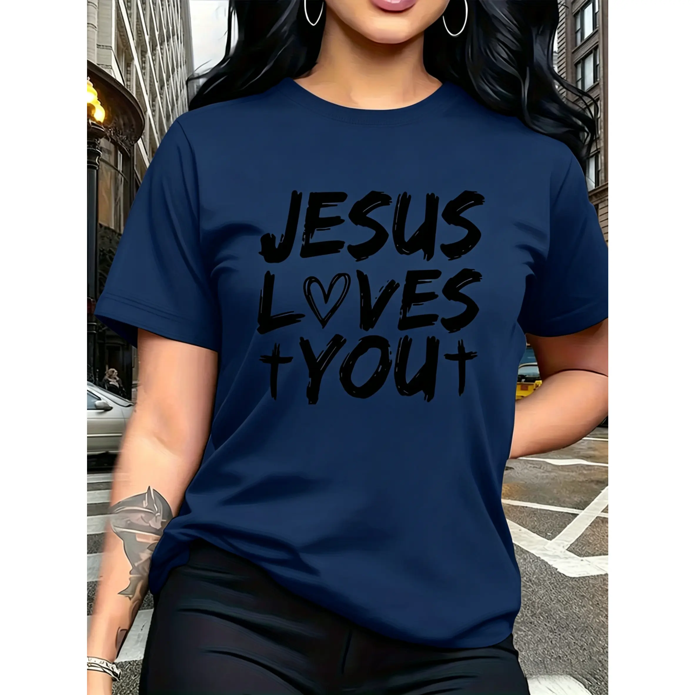 100% cotton, one of the core expressions of Christian faith, with the trendy and fashionable "Jesus Loves You" letter print, simple and casual versatile T-shirt, suitable for leisure and travel