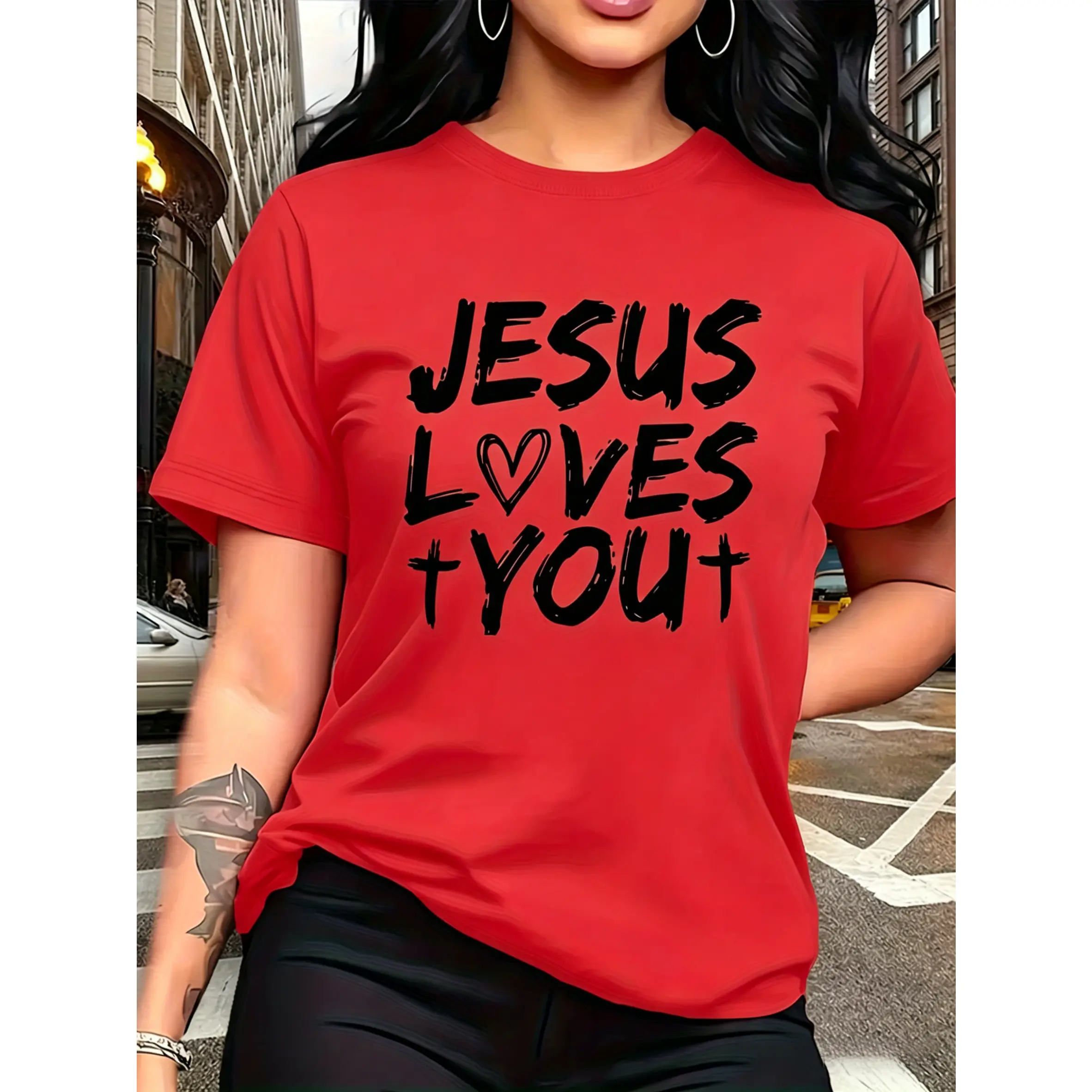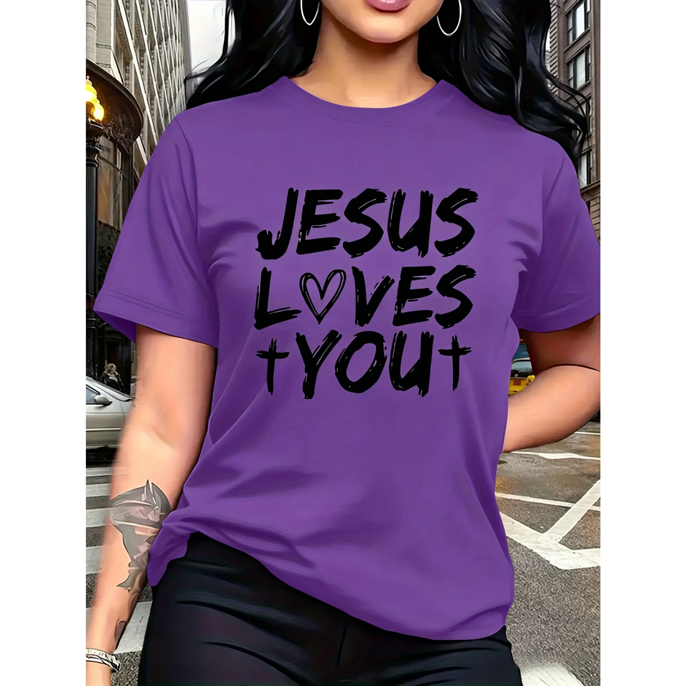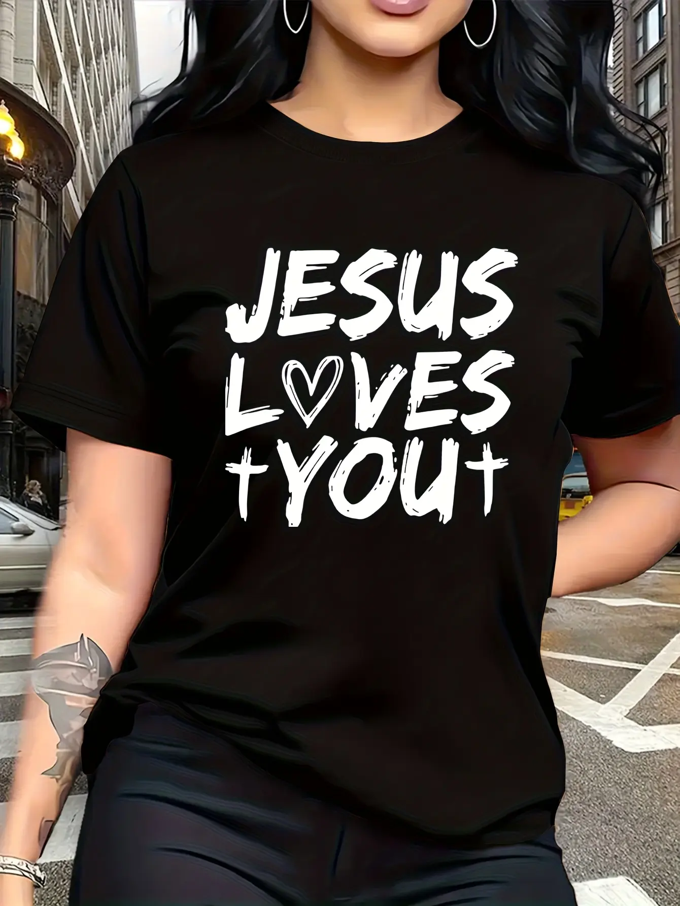 100% cotton, one of the core expressions of Christian faith, with the trendy and fashionable "Jesus Loves You" letter print, simple and casual versatile T-shirt, suitable for leisure and travel