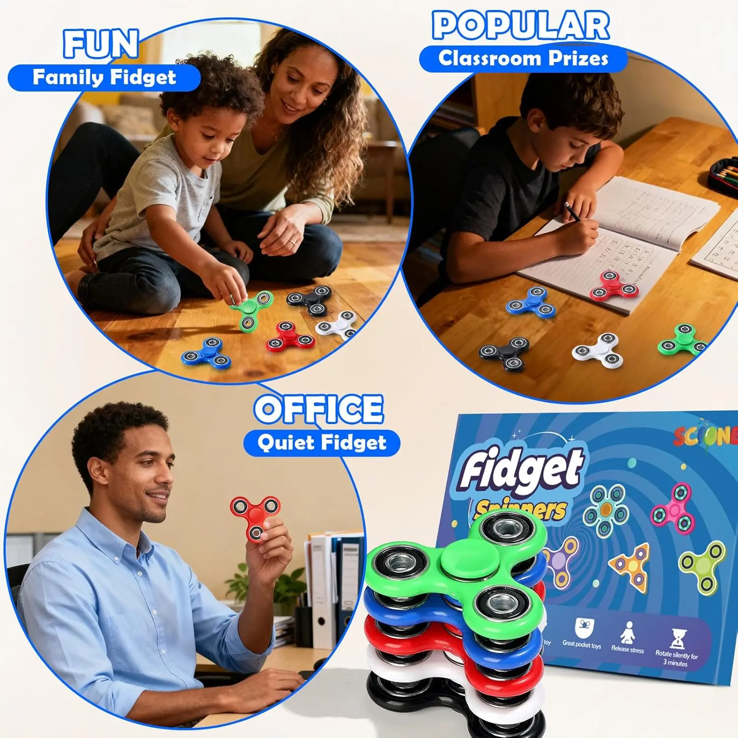 Round corner and smooth surface,protect your fingers from scratching. NO REPAIR, OIL, MAINTENANCE NEEDED: Use the stress relief toys right out of box. GUARANTEE 1 MIN+ TIME: The hand spinners will comfortably rotating for 2 minutes and with a really hard spinner even longer. They also suffer very little slow down during tricks.