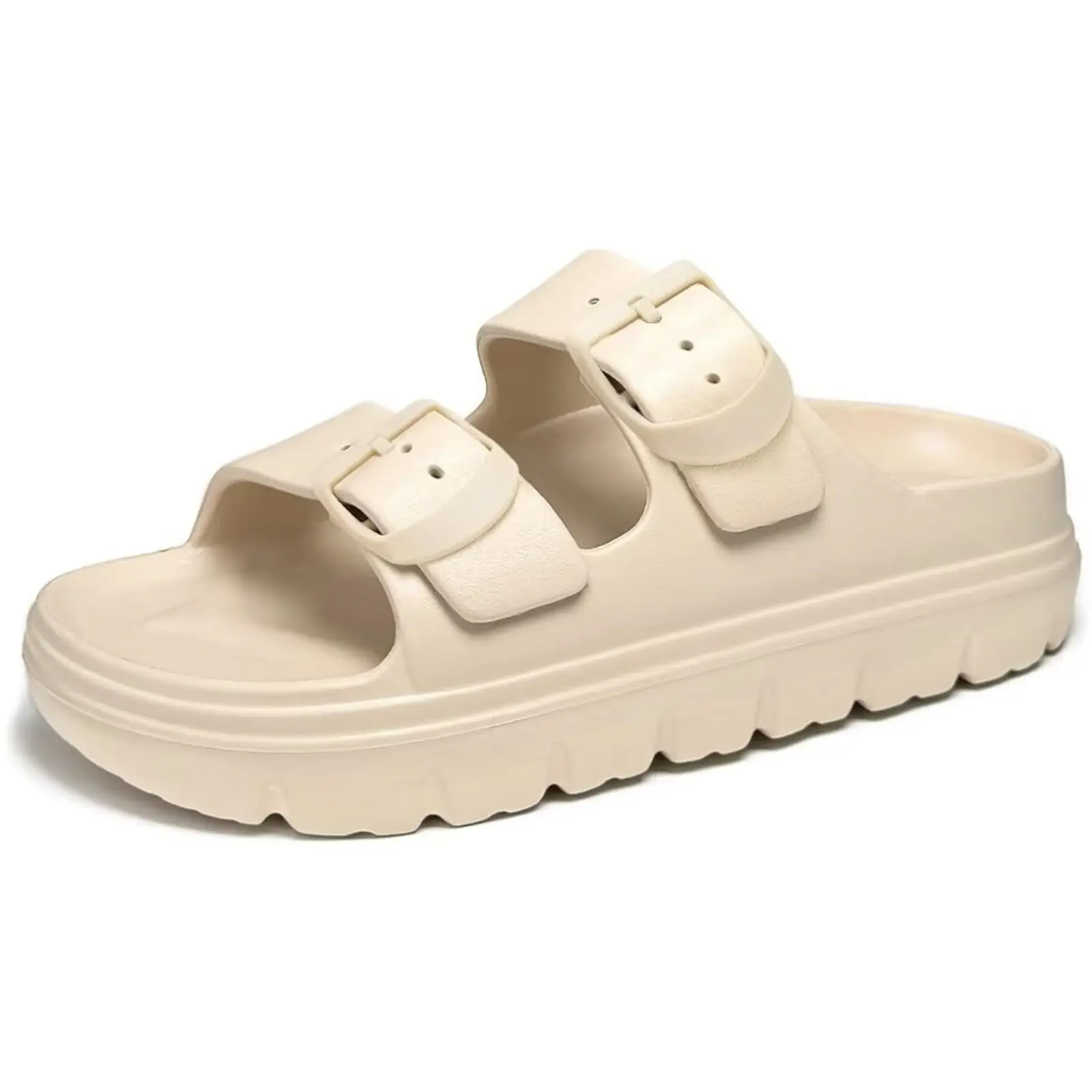 SCE Womens Platform Sandals with Arch Support, Summer Beach Slides with Adjustable Buckle, Comfort Lightweight Chunky Cushion Slip on Sandal