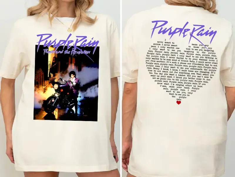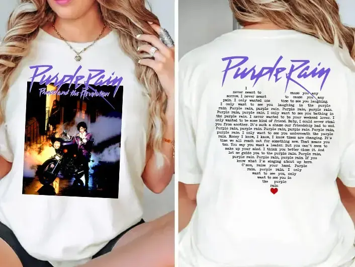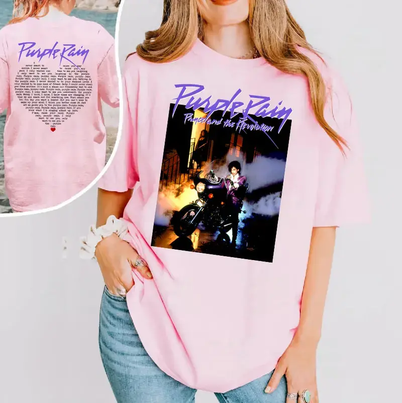 Prince Shirt, Purple Rain Lyrics Tee, Prince and The Revolution Graphic T-Shirt, 2 Sided Music Fan Shirt, Gift for Fans