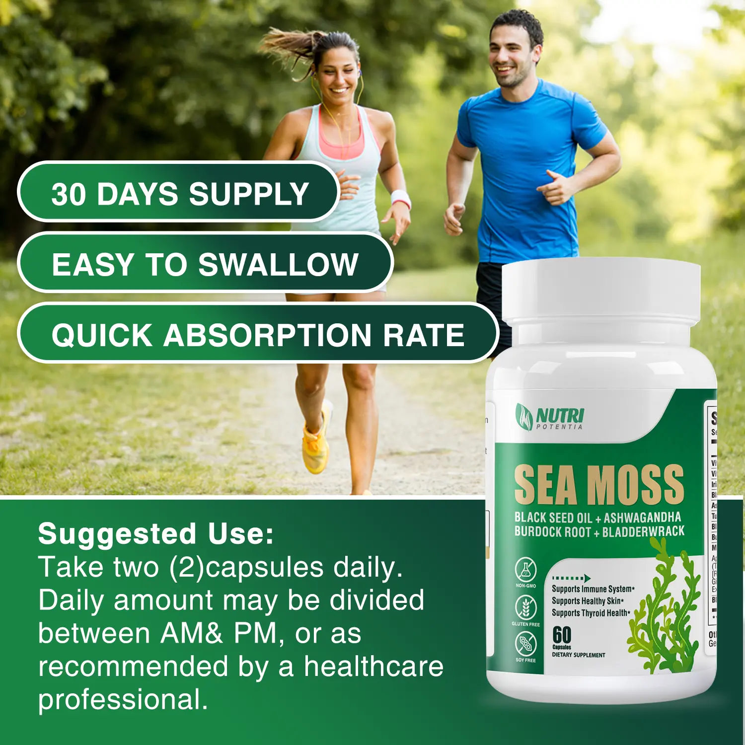 ·Natural Nutritional Support: Sea moss capsules is carefully formulated with a blend of powerful ingredients, including Irish Sea Moss, Black Seed, Ashwagandha, Turmeric, Bladderwrack, Burdock, and a mineral plant extract blend. This natural combination provides essential nutrients to support overall health and wellness.