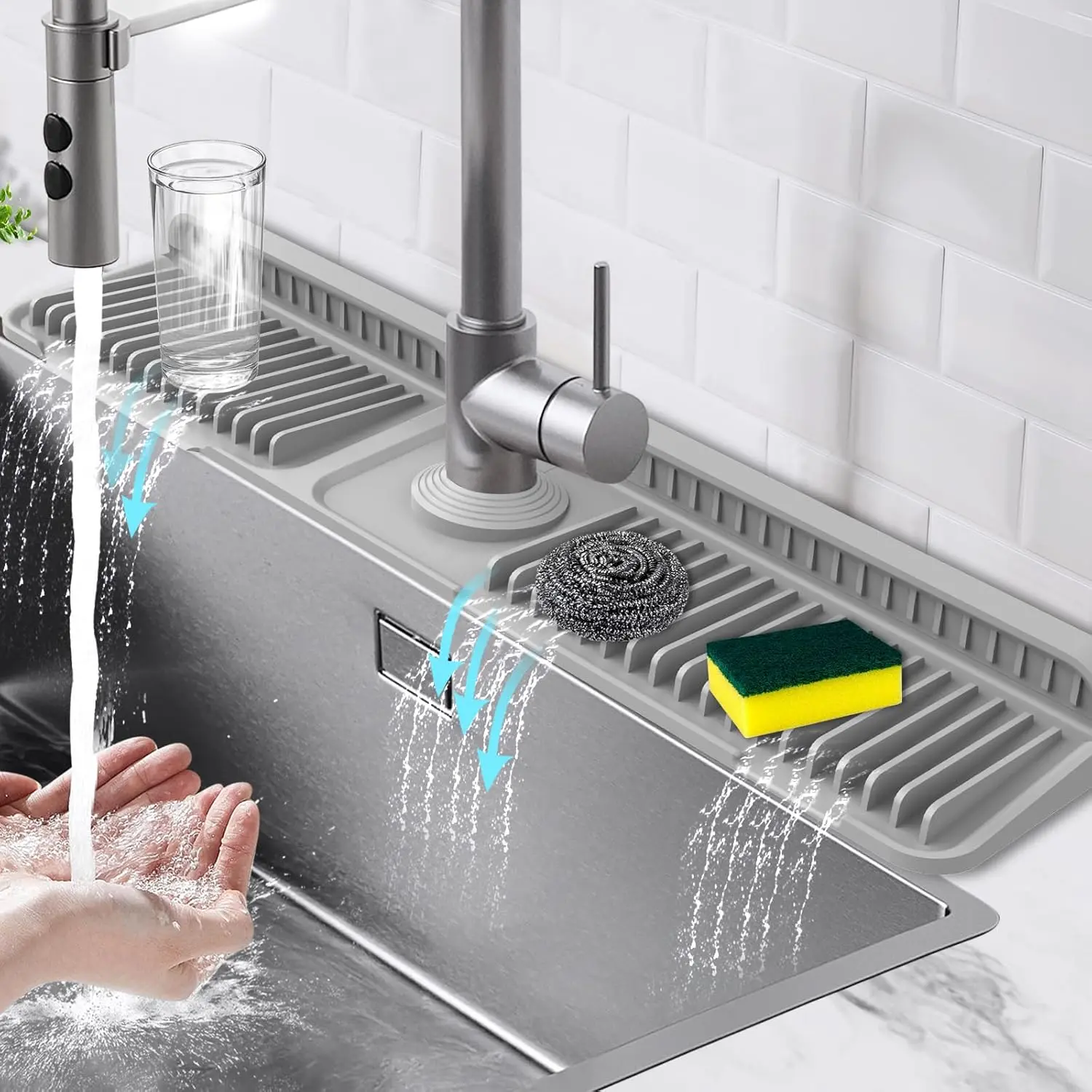 This silicone kitchen sink splash guard effectively prevents water splashes from spreading around your sink area, keeping your countertops, cabinets, and floors dry and tidy. Ideal for preventing water messes while washing dishes or rinsing fruits and vegetables.