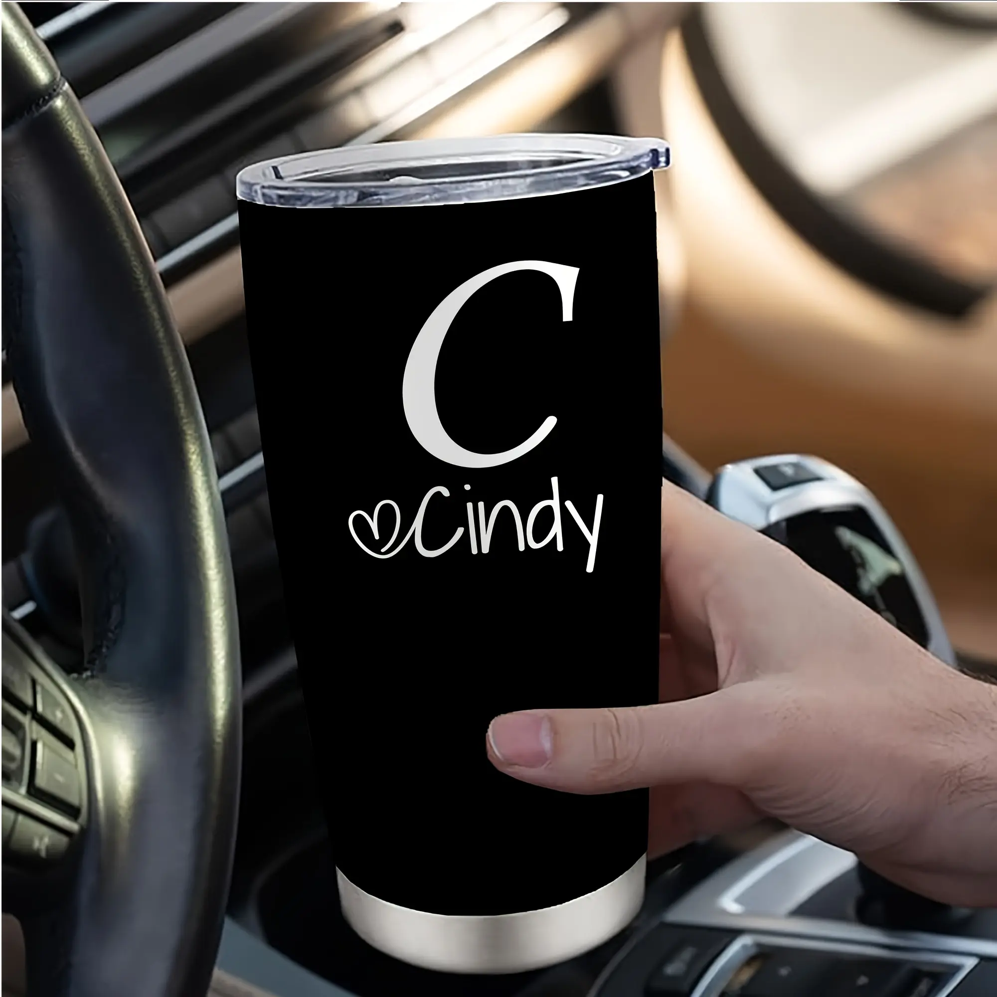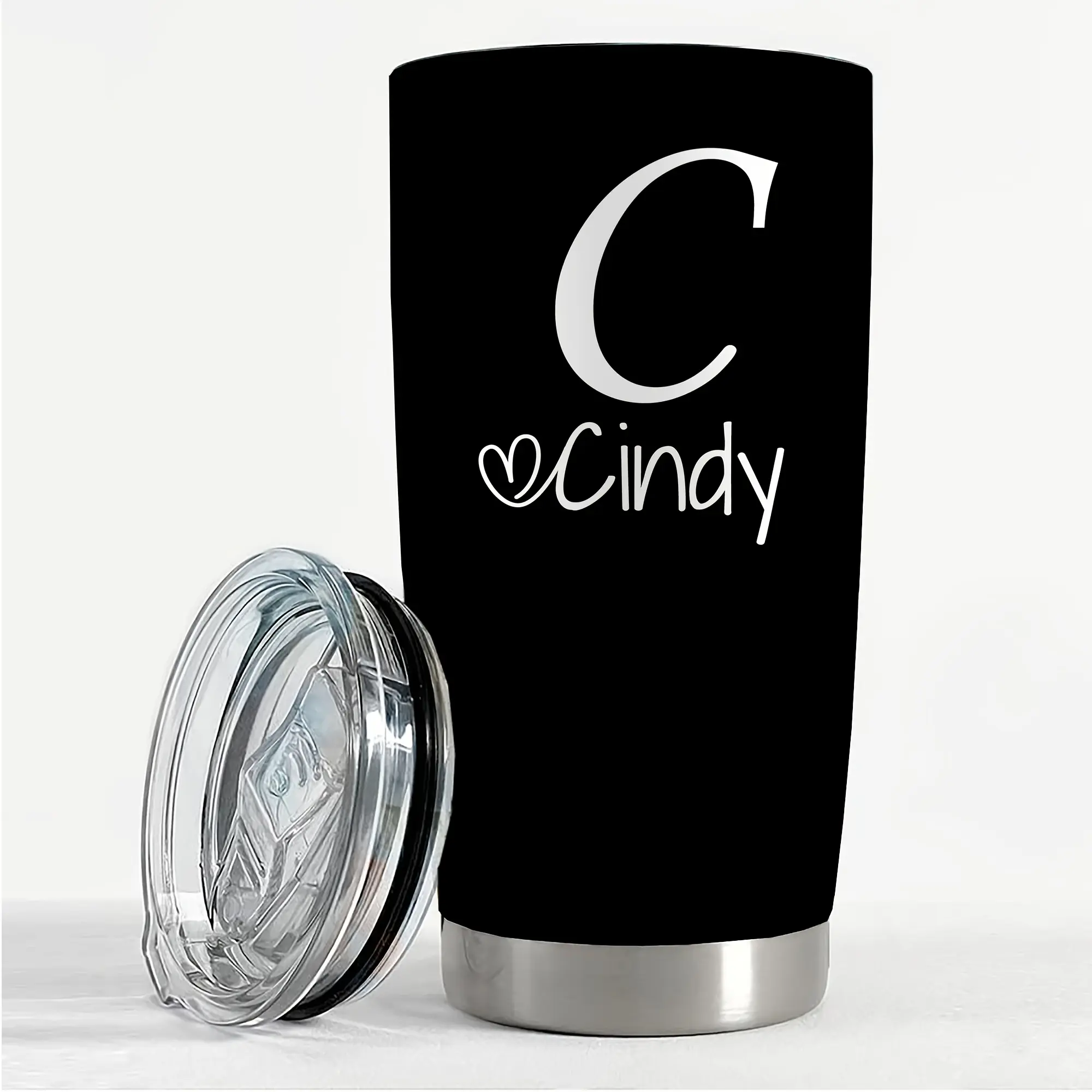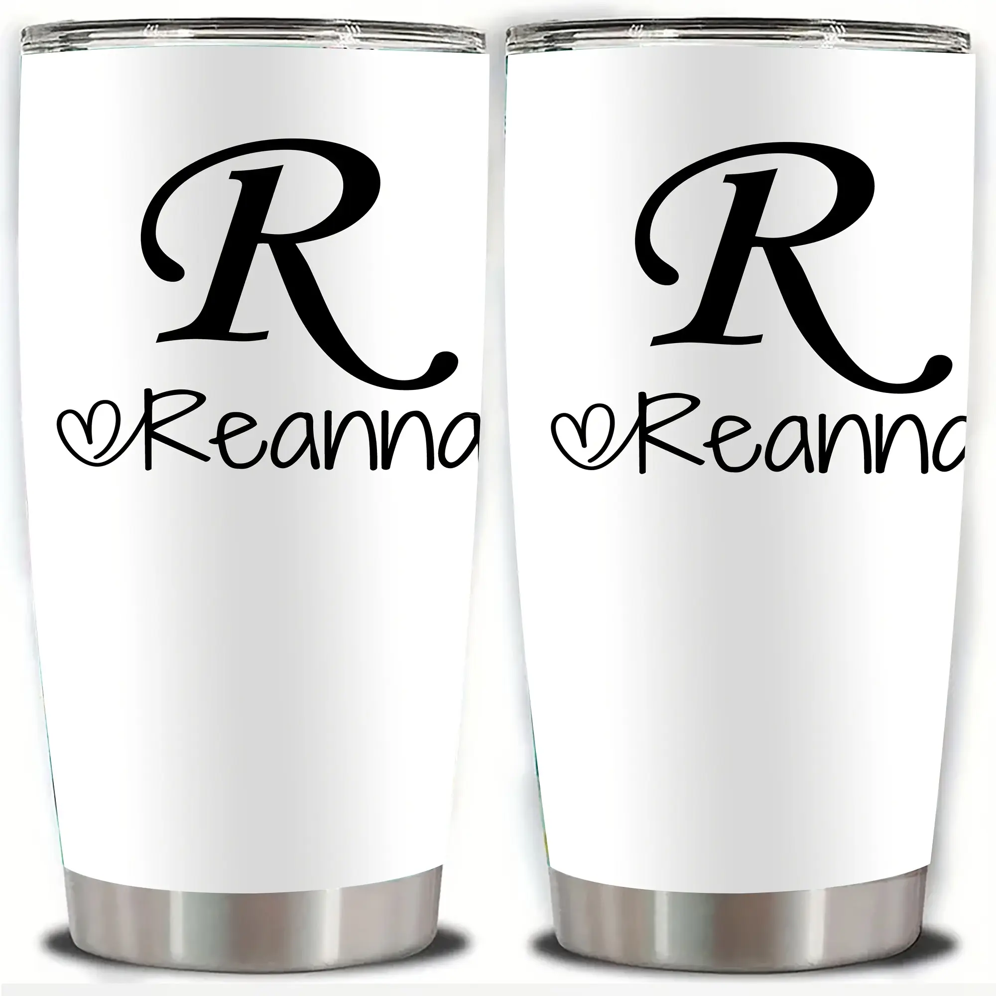 Personalized Stainless Steel Tumbler 20oz - Custom Name/Initials/Text - Double-Wall Insulated Cup with Leakproof Lid & Elegant Cursive Lettering - White with Black Lettering - Ideal Gift for Valentine's, Birthday, Office, Travel - Ideal for Her, Him, Boss
