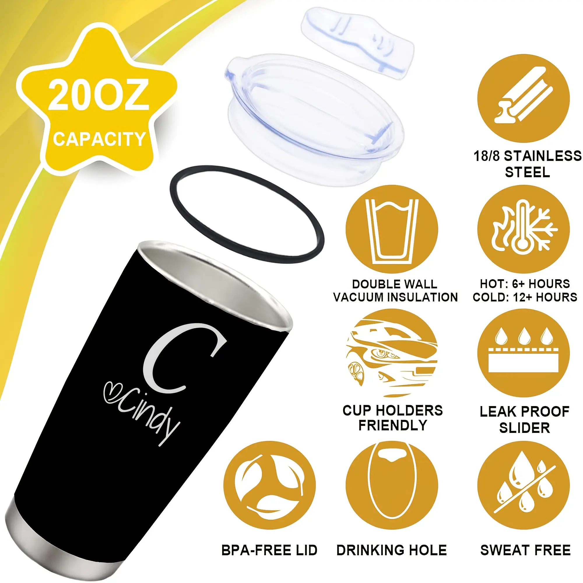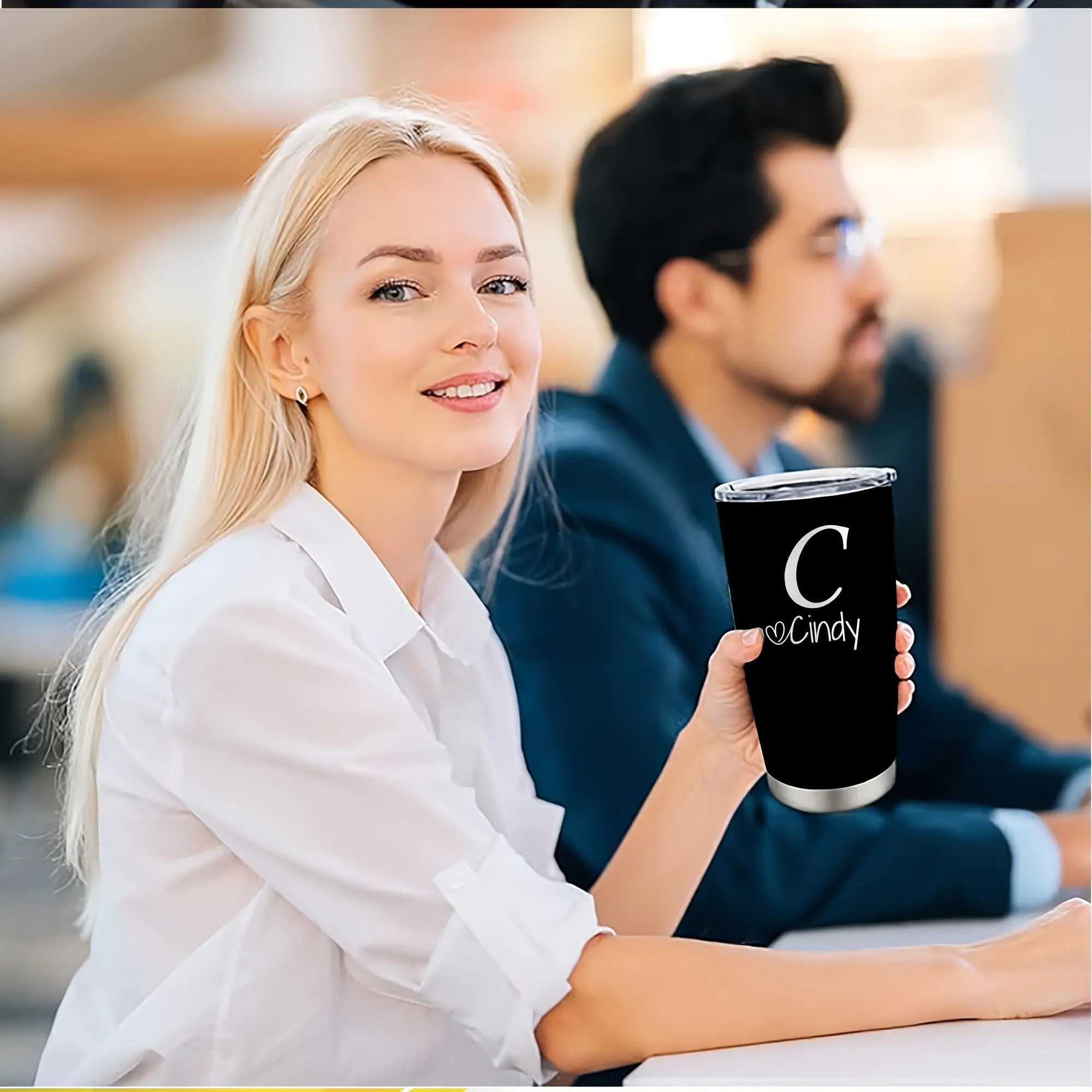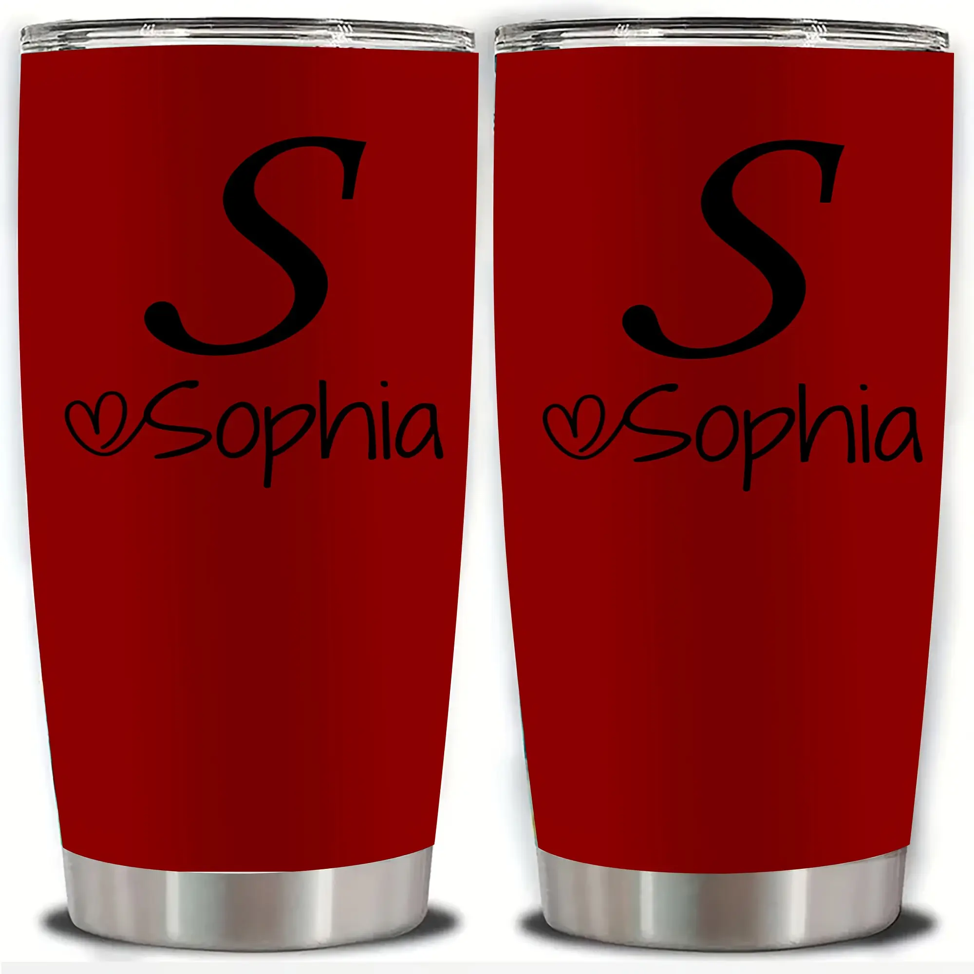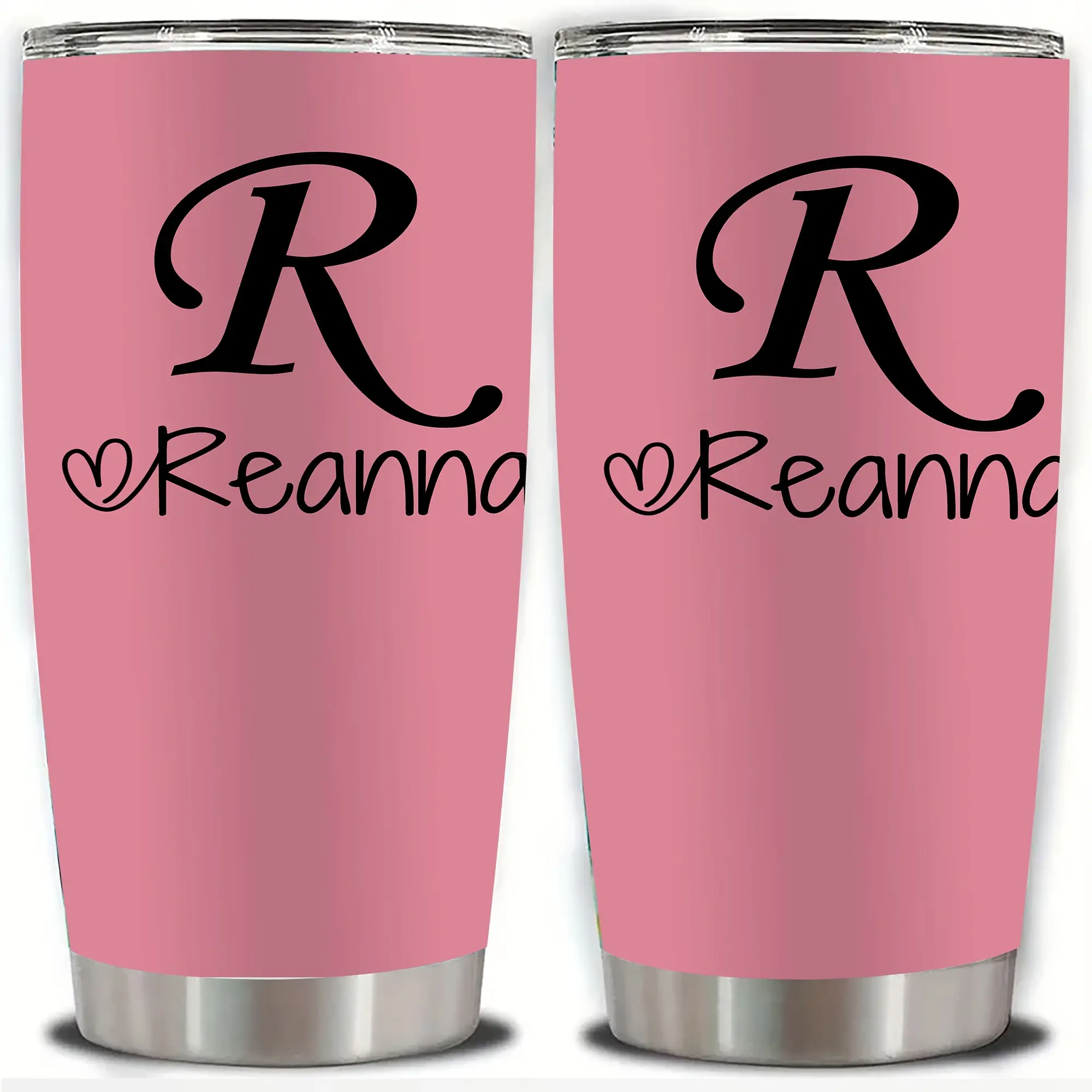 Personalized Stainless Steel Tumbler 20oz - Custom Name/Initials/Text - Double-Wall Insulated Cup with Leakproof Lid & Elegant Cursive Lettering - White with Black Lettering - Ideal Gift for Valentine's, Birthday, Office, Travel - Ideal for Her, Him, Boss