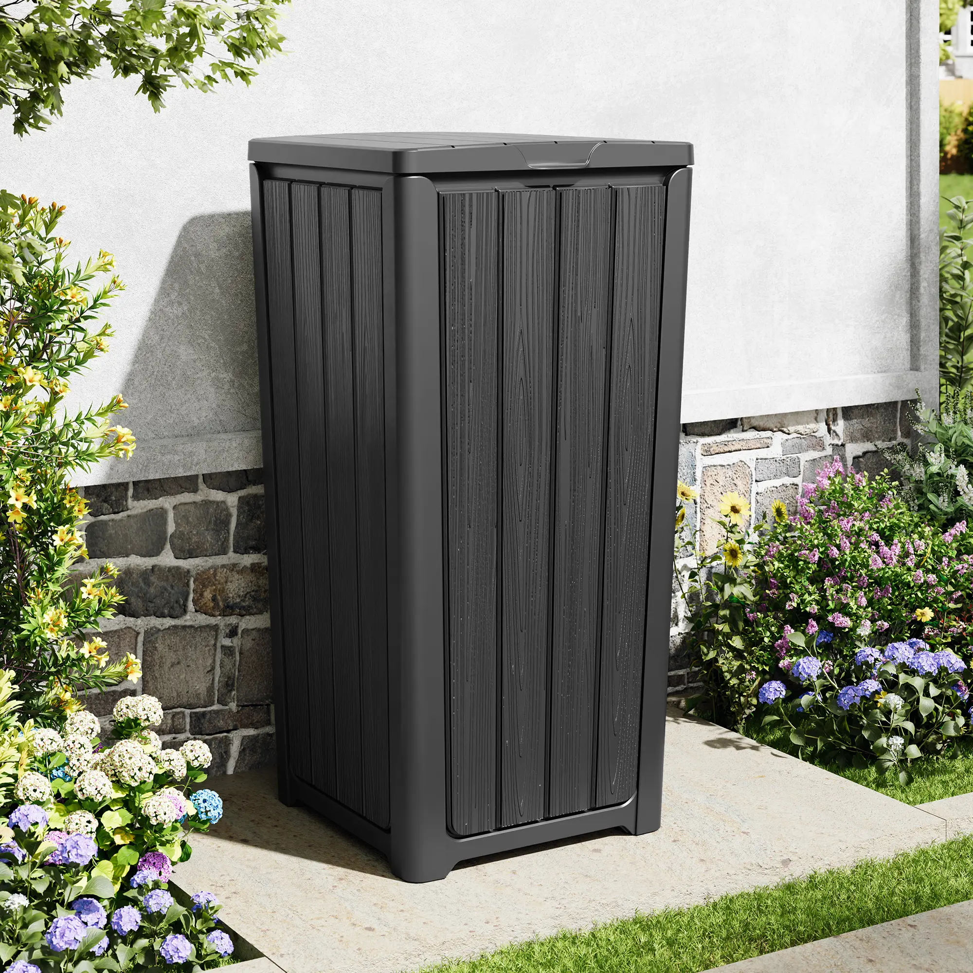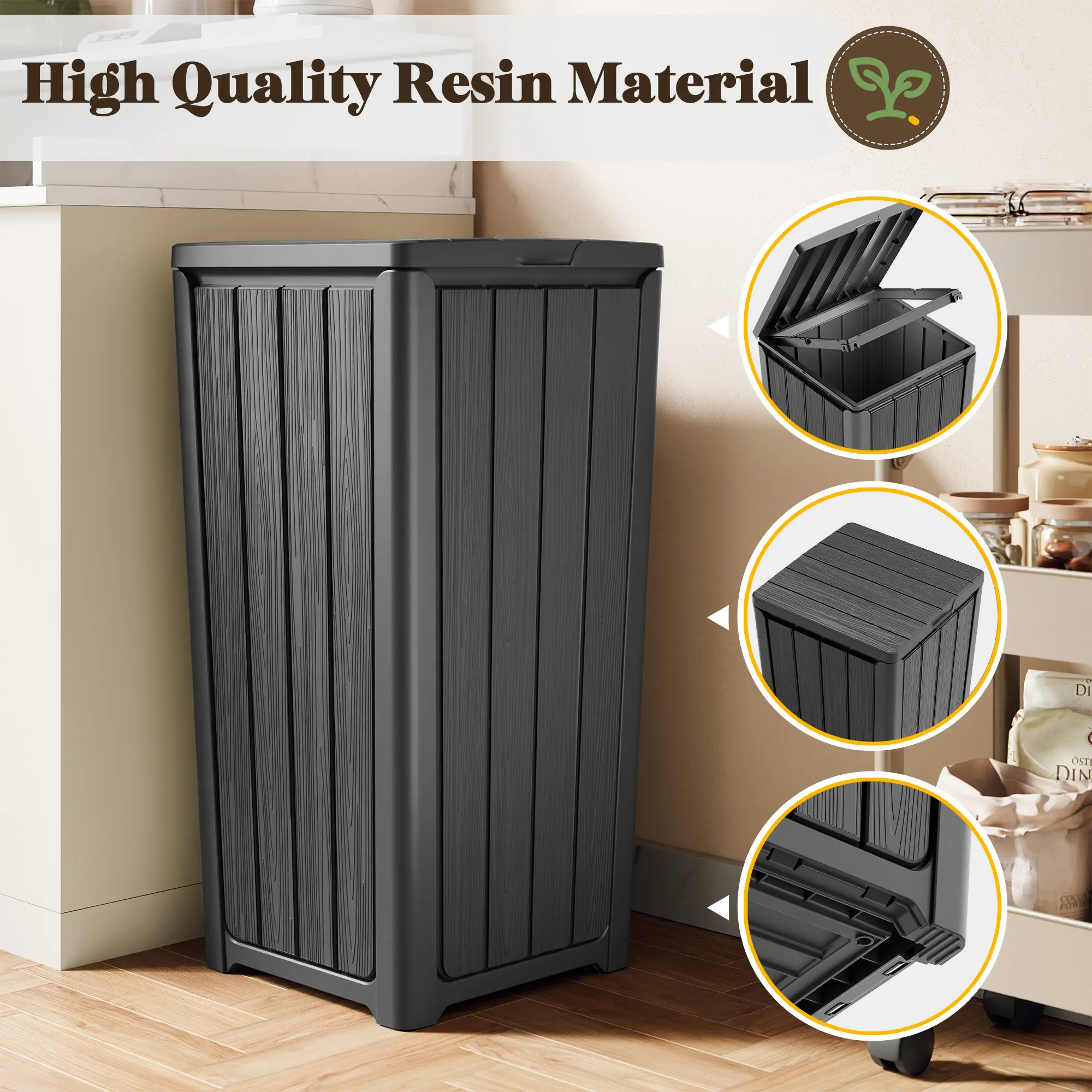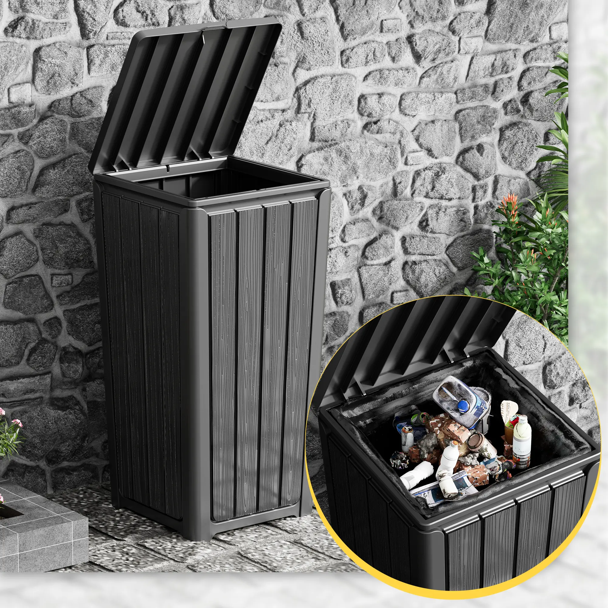 Outdoor Trash Can with Lid Waterproof Resin Garbage Can with Tiered Lid Outside Trash Bin for Patio Kitchen Backyard or Deck RIWENGO