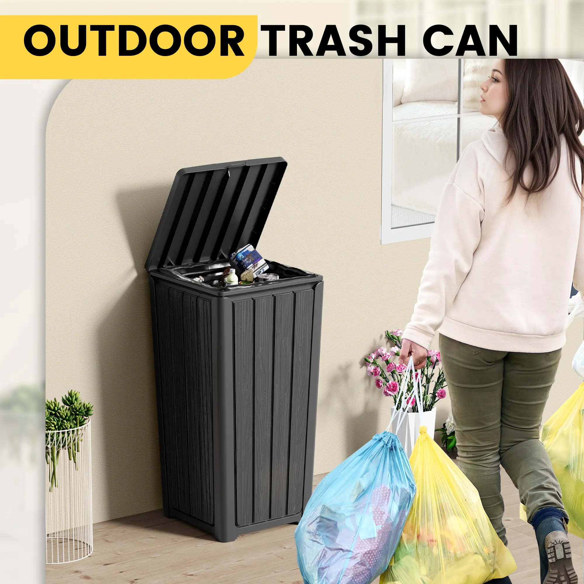 Compatible with 25 30 40 gallon trash bags suitable for indoor and outdoor trash