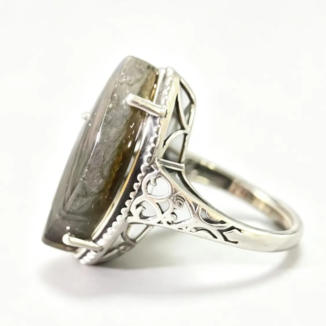 Labradorite is a 100% natural gemstone, formed over millions of years deep within the earth. The visible internal lines, fine cracks, and unique texture patterns on the stone are not manufacturing defects—they are the inherent, natural characteristics of this mineral. These "fingerprints of nature" are what make each labradorite unique and authentic, and they do not affect the durability or beauty of your ring.